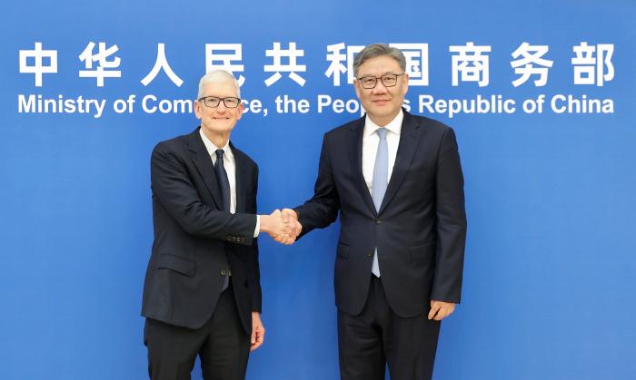 中国商务部部长王文涛会见苹果公司首席执行官库克