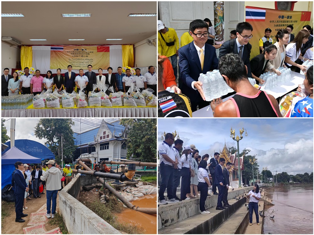 中国驻泰国使馆向披集府遭受洪灾民众捐赠“爱心包”