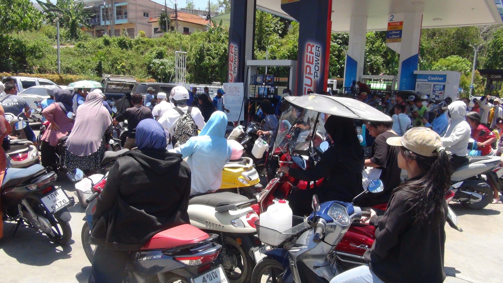 燃油价格上涨 泰国也拉府勿洞区居民加油排起超过一公里长队