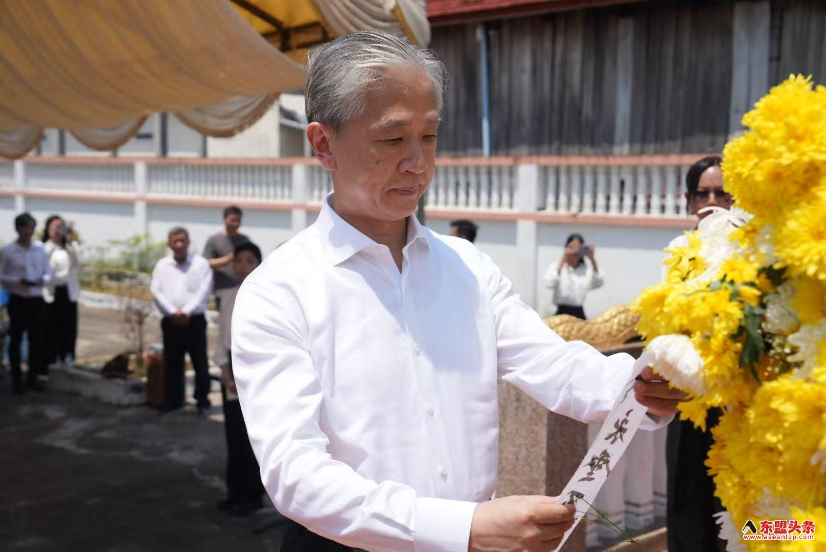 清明将至 中国驻柬埔寨大使汪文斌和柬埔寨华侨华人祭奠中国援柬专家罗锦春烈士