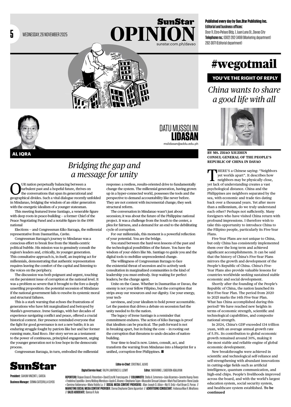中国驻达沃总领事在菲律宾媒体发表署名文章 《中国想和大家一起过“好日子”》