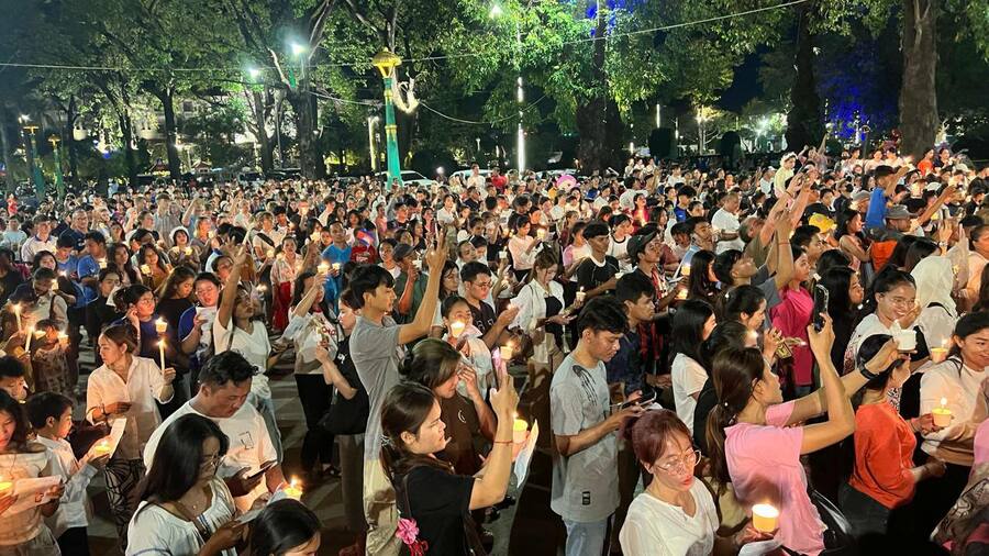 柬埔寨民众与外国游客在暹粒举行烛光集会 呼吁泰柬结束战争