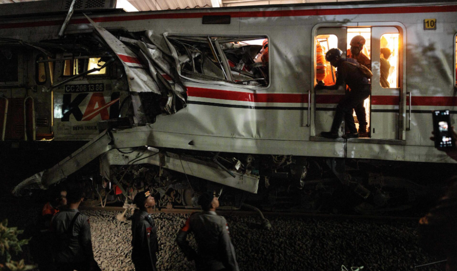 印尼列车相撞已致7死81伤 救援人员正全力营救2名被困者