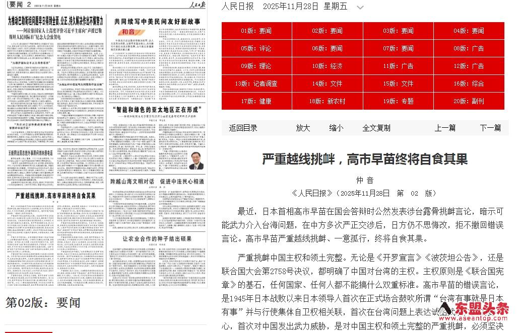 中国官媒连用九个"严重"批判日本首相高市早苗涉台错误言论 称其 “终将自食其果”
