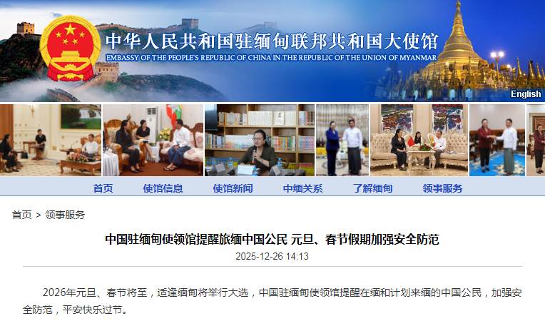 中国驻缅甸使领馆提醒旅缅中国公民 元旦、春节假期加强安全防范