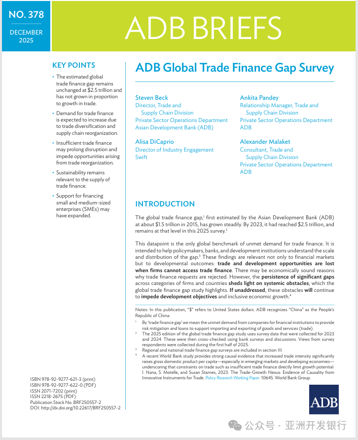 亚行报告:供应链重构背景下,贸易融资需求将上升