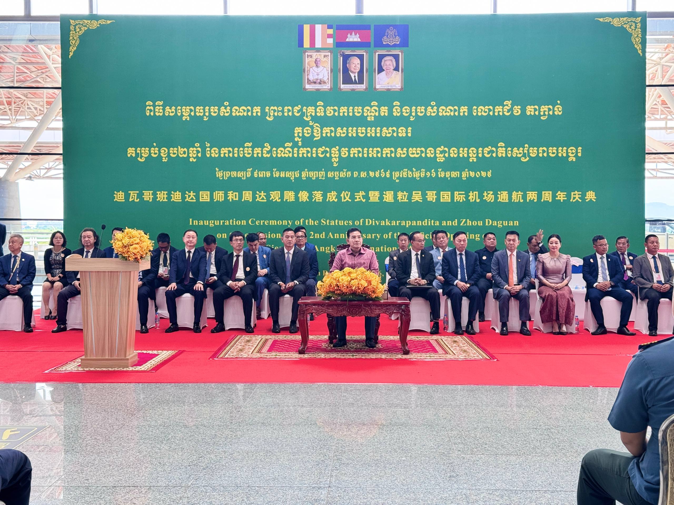 暹粒吴哥国际机场启用两周年 柬中两位历史人物雕像揭幕铸就文化桥梁