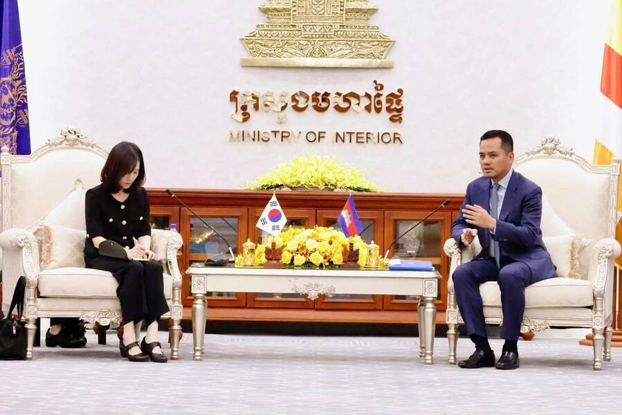 柬埔寨副首相兼内政大臣韶索卡与韩国外交部第二次官金珍我代表团,于内政部总部举行了工作会谈。在会议上对三项关键举措达成一致,旨在为预防、遏制和打击网络诈骗犯罪的合作