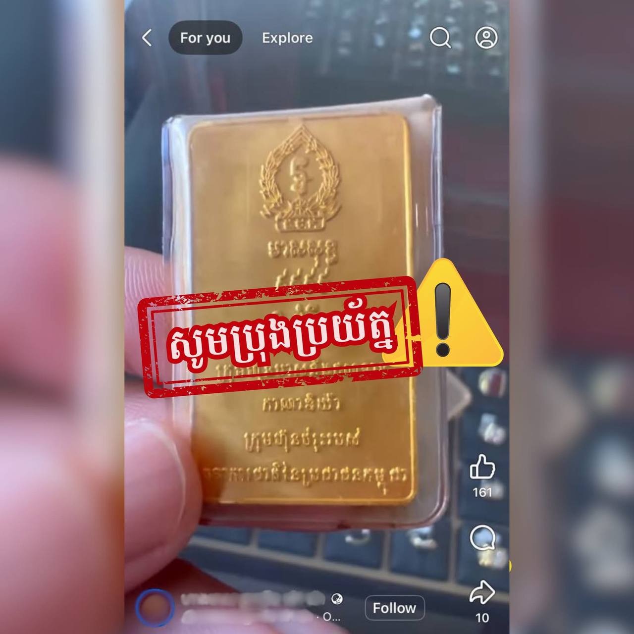 柬埔寨国家银行澄清: 从未发行任何黄金产品