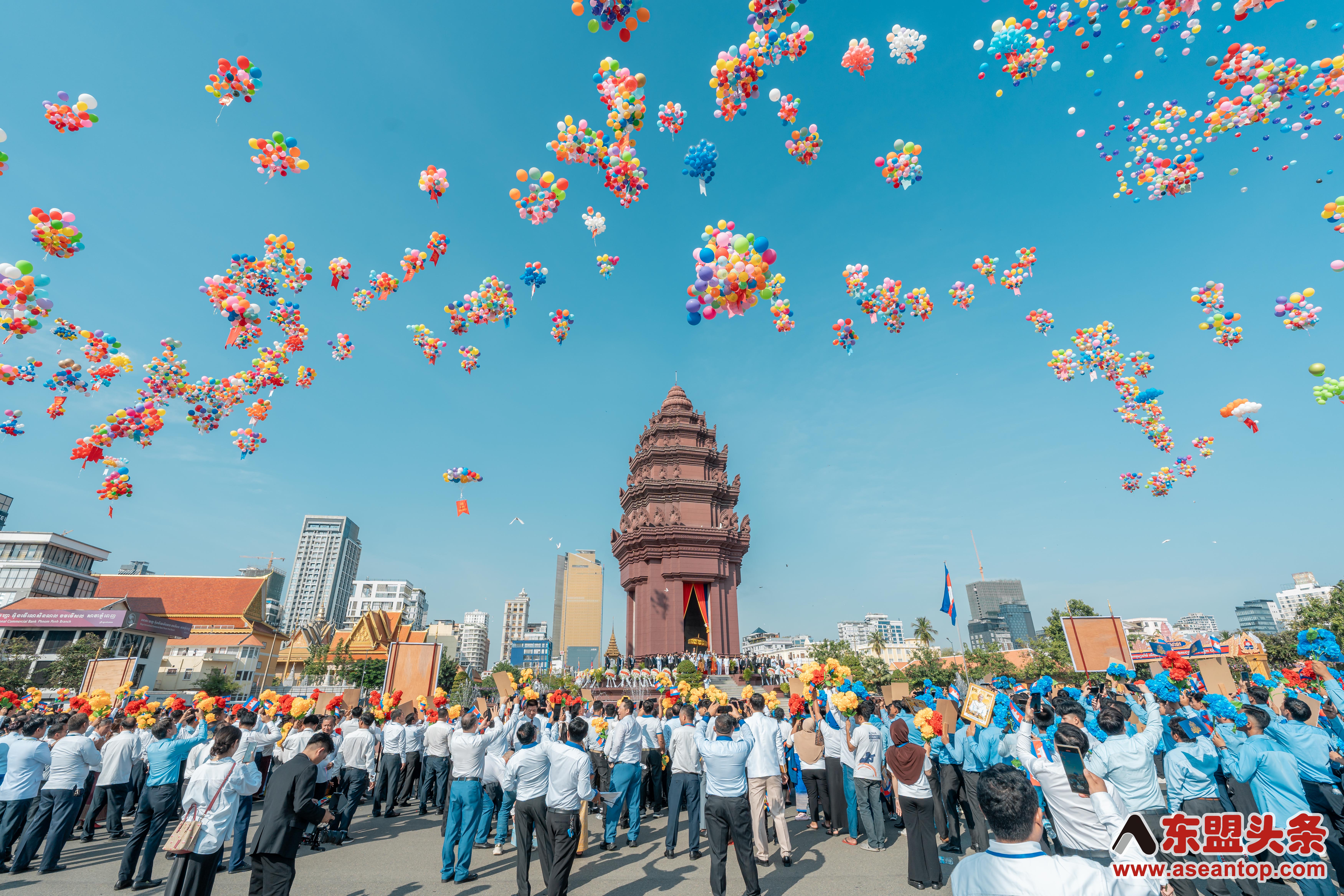 柬埔寨独立72周年庆典在金边举行, 西哈莫尼国王点燃“胜利之火”