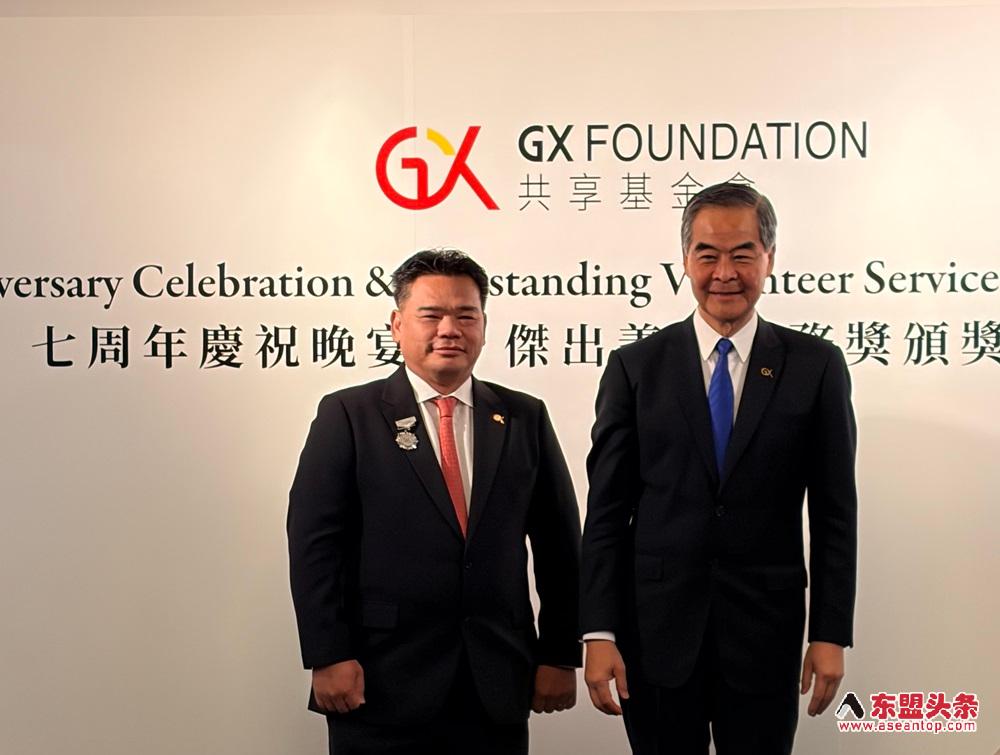中国全国政协副主席兼共享基金会主席梁振英向柬埔寨著名厨师颁发“杰出义工服务奖”荣誉