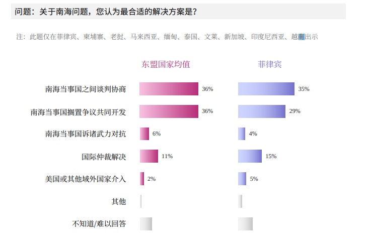 调查:东盟国家民众认为南海问题最合适的解决方案是谈判协商、搁置争议共同开发