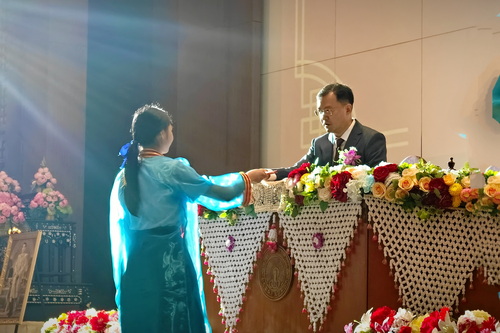 陈海平祝贺同学们圆满完成学业,表示中泰迎来建交50周年暨“中泰友谊金色50年”,两国关系进入新阶段,面临重大发展机遇,通晓中文、了解中国文化的重要性不断提升,也是崇华学子优势所在。希望同学们牢记“博学之,审问之,慎思之,明辨之,笃行之”的古训,发扬拼搏向上精神,努力学习中文、弘扬中国文化、密切中泰合作,以青春奋斗助力中泰友好。