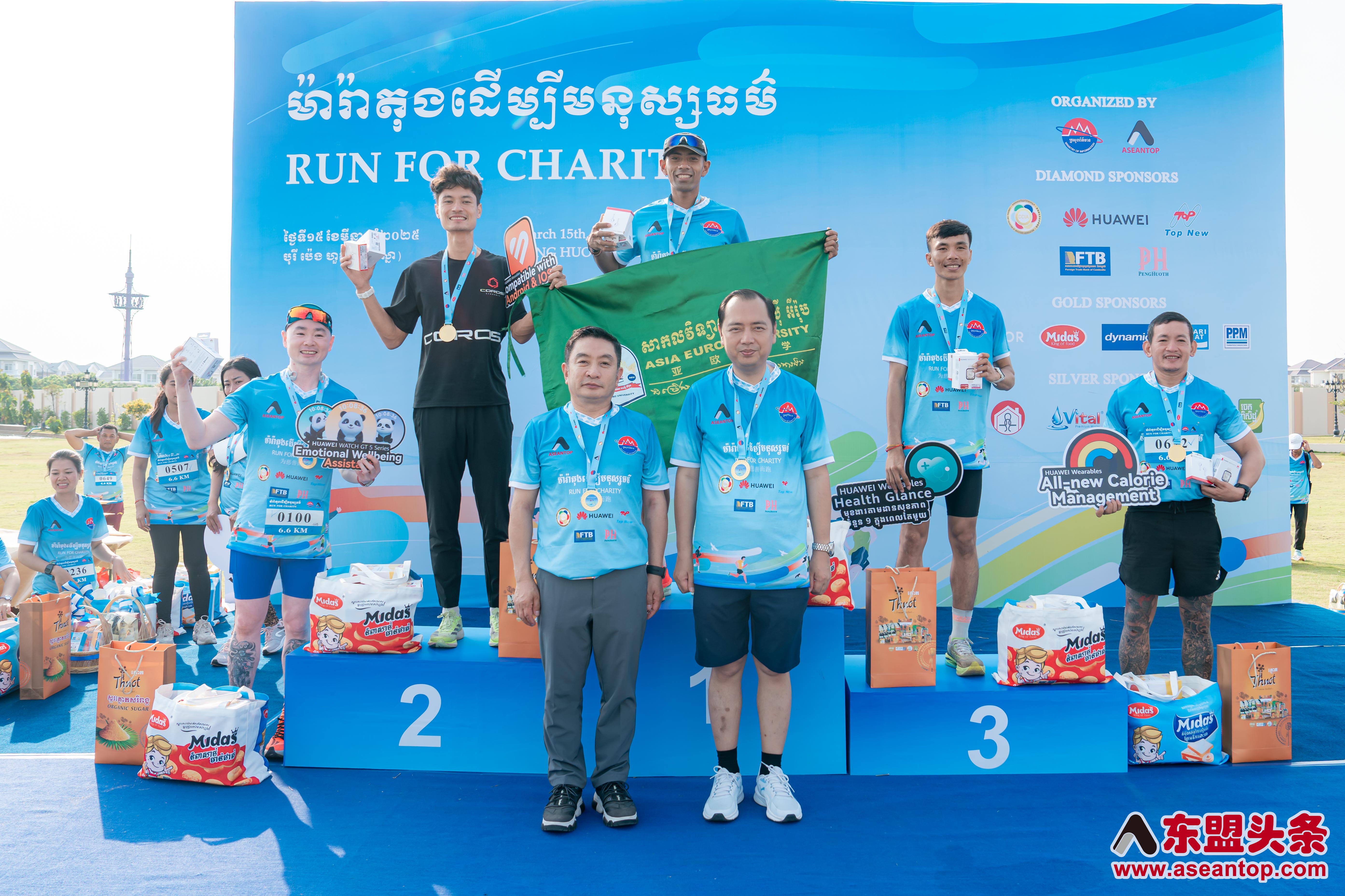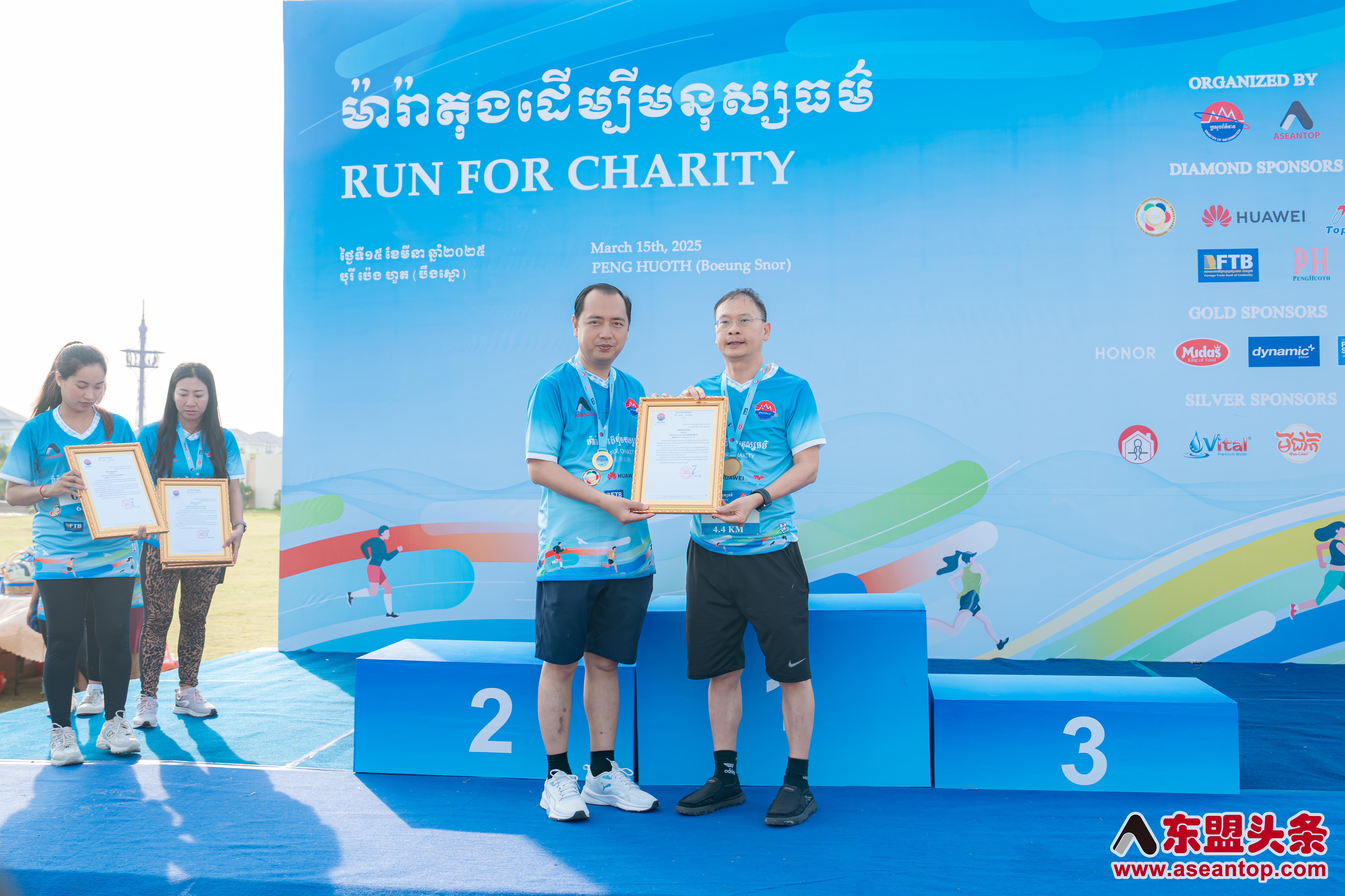 此次慈善马拉松活动得到了多家企业的鼎力支持,包括华为、荣耀、东盟头条、Midas、 Mee Chiet、Vital、柬埔寨投资者商会联盟、FTB银行、Borey Peng Huoth、Dynamic、P.P.M、Terratex、Pocari Sweat、Starbalm Gel、Jek Piseth、TOP NEW 拓晨、CONFIREL-AUTHENTIC KHMER PRODUCT等。这些企业及组织通过物资、资金及服务赞助,共同助力公益事业。