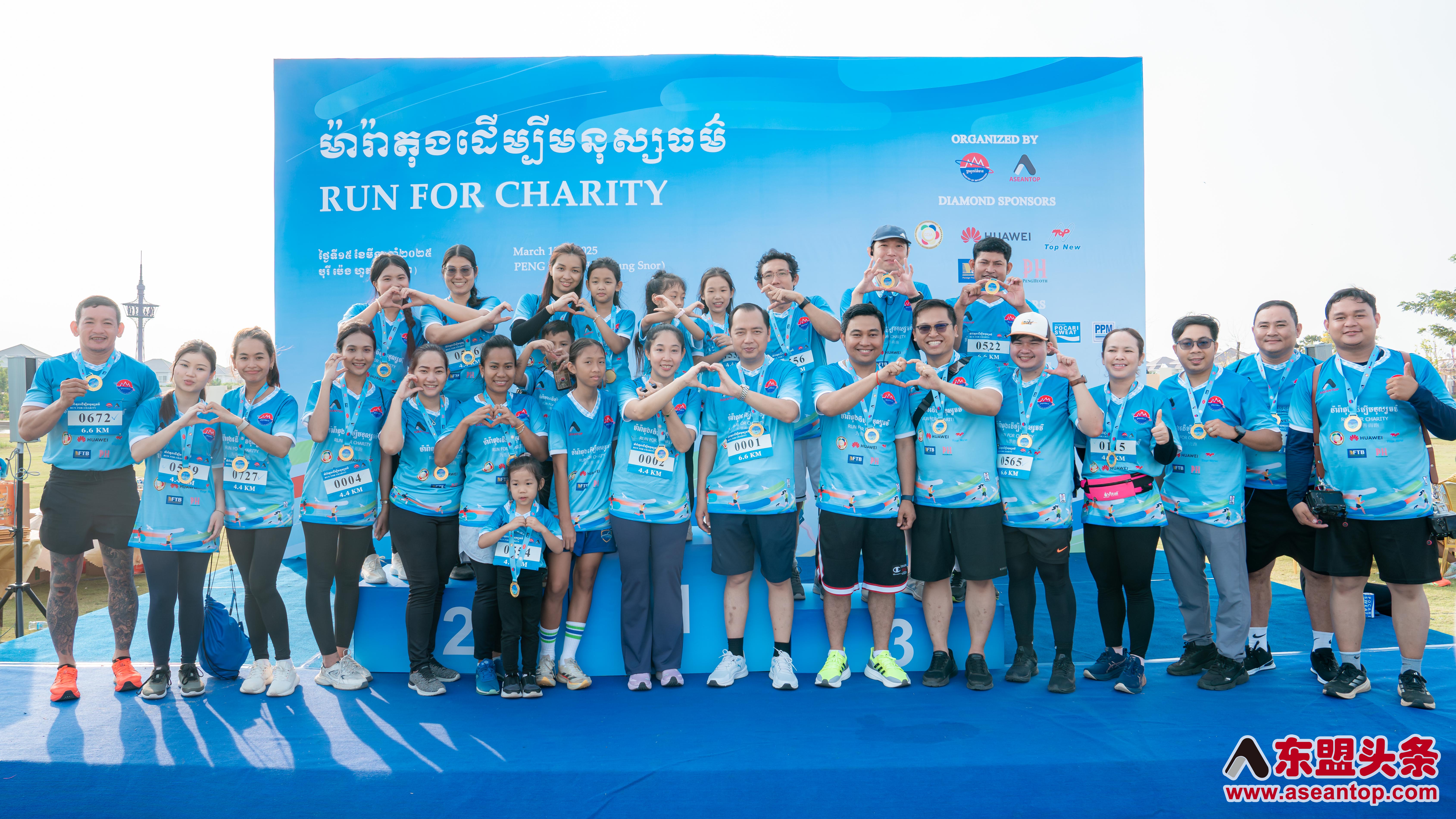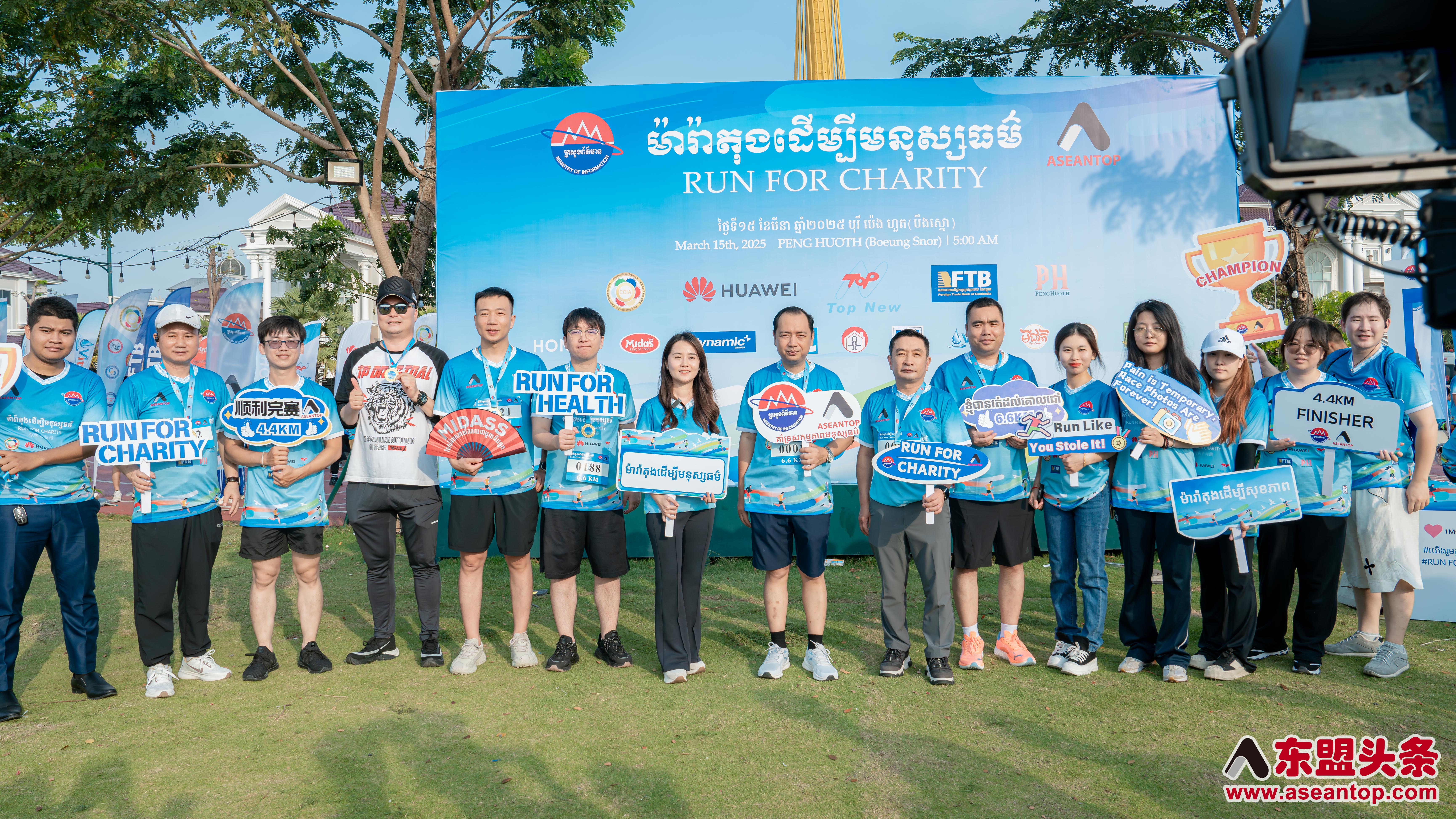 东盟头条金边电 (记者 森淼)3月15日,由柬埔寨新闻部与东盟头条新闻社(Aseantop News)联合主办的"为慈善而跑"马拉松活动在金边炳发城Eco Park举行。本次赛事吸引超过1600名跑步爱好者及公益人士参与,通过奔跑传递爱心,为坤塔帕花基金会筹集到1亿瑞尔(约18万元人民币)善款。