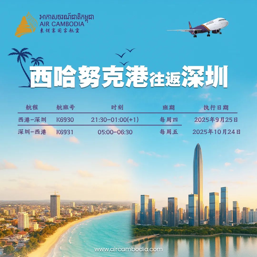 东盟头条电 柬埔寨国家航空(Air Cambodia)8月26日宣布,为满足广大商旅人士迫切需要,填补航线空白,柬国航拟于9月25日正式开通柬埔寨西哈努克港(简称西港)=中国深圳直飞航线。