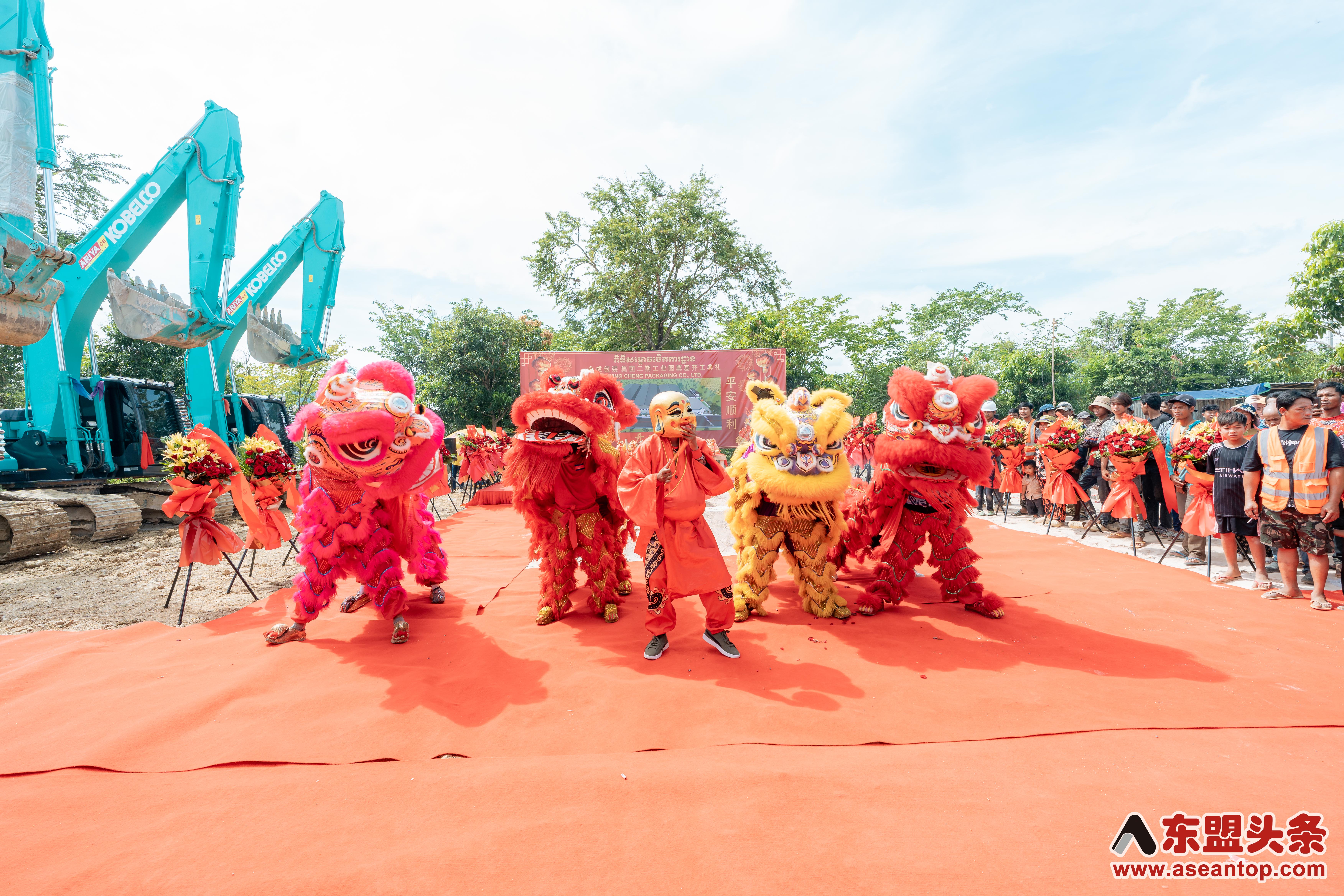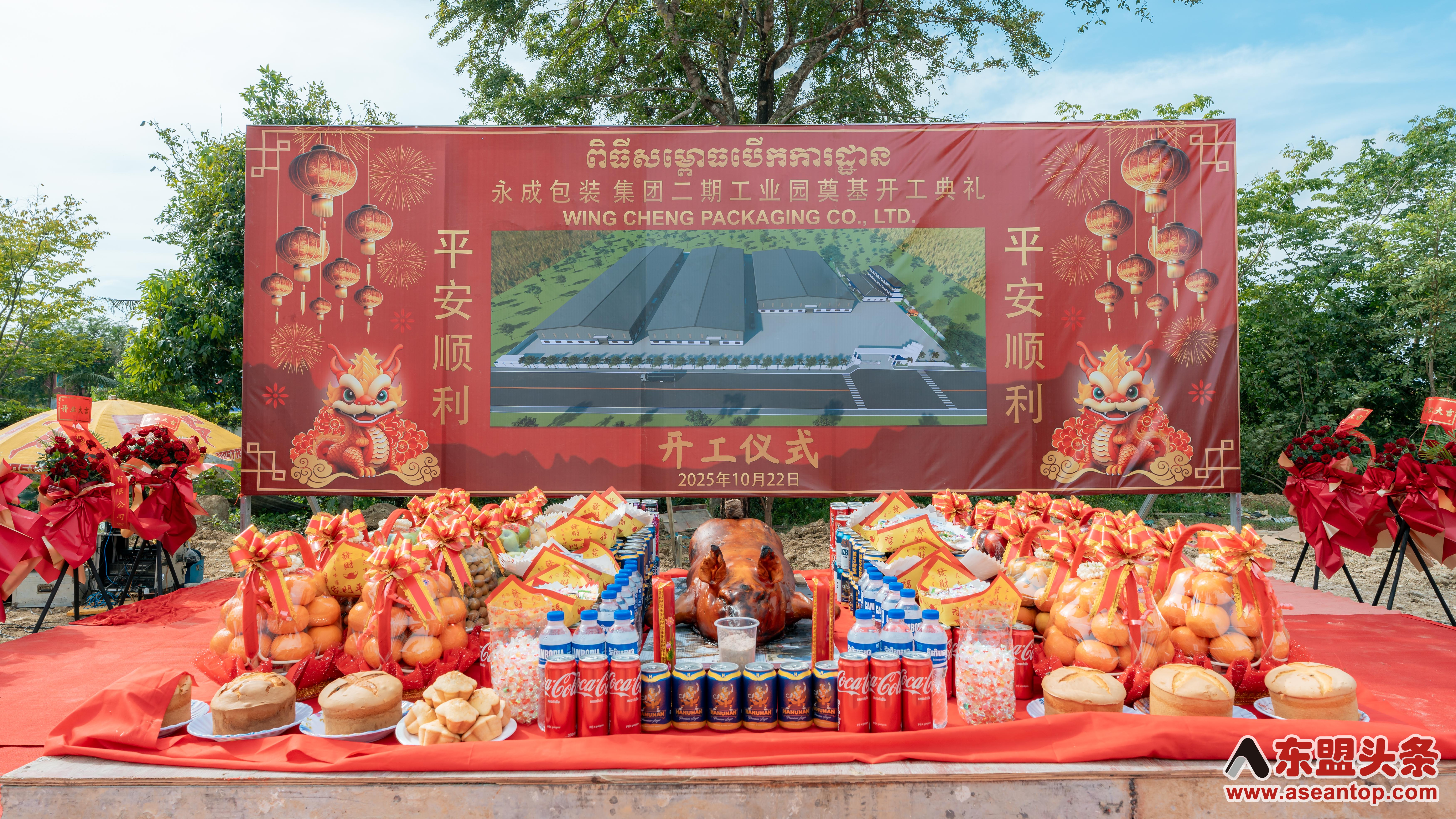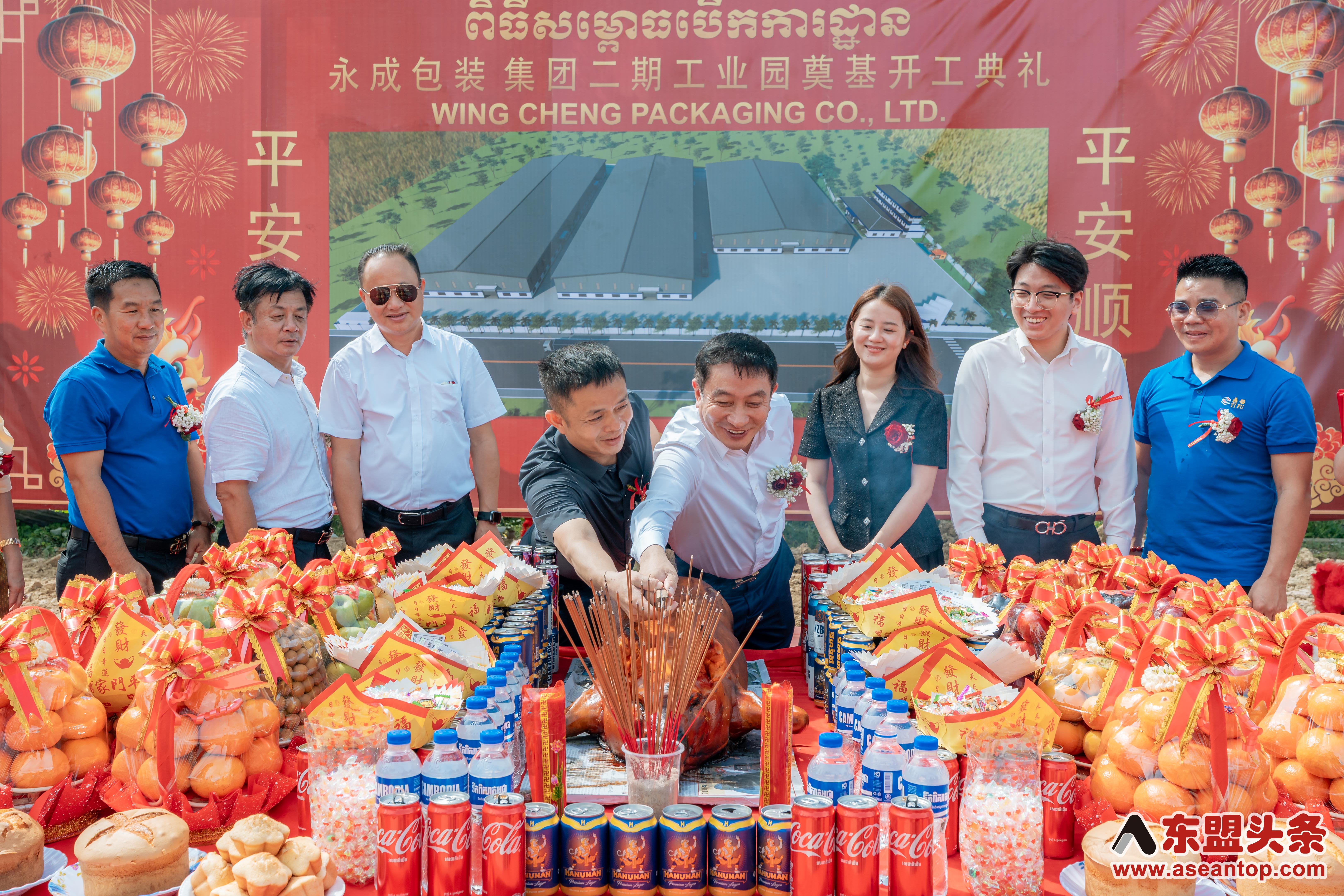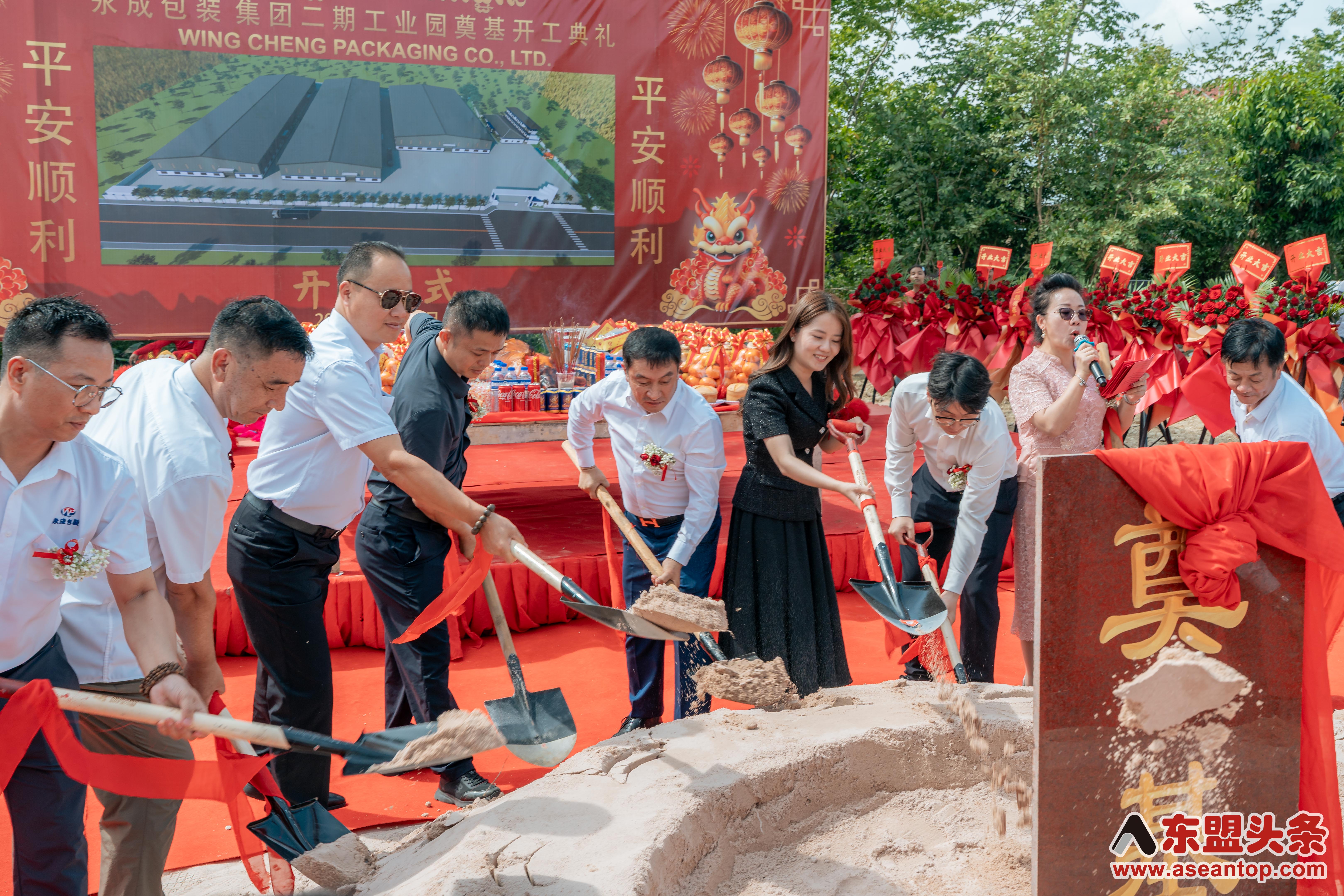 东盟头条电 10月22日上午,中资企业柬埔寨永成包装集团二期工业园奠基开工典礼在柬埔寨4号公路(金边至西哈努克港)28公里处项目现场隆重举行,永成包装集团董事长郑贤江、执行董事刘建华出席仪式并致辞。