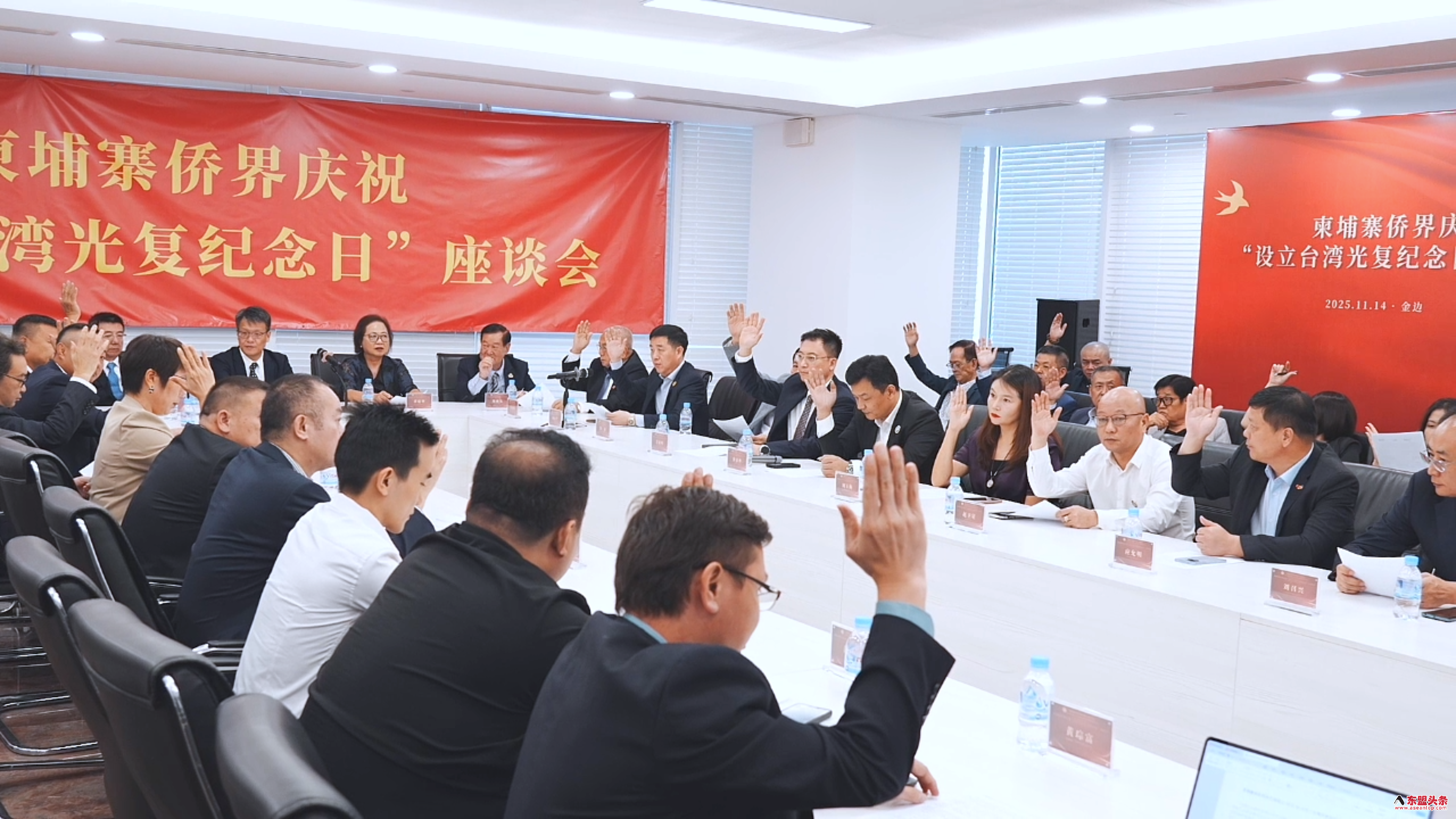 东盟头条电 2025年11月14日,由柬埔寨中国和平统一促进会主办的“柬埔寨侨界庆祝设立台湾光复纪念日座谈会”在柬埔寨金边举行,侨团组织代表及各界侨胞共同纪念台湾光复80周年,联合发表坚决拥护和支持中国设立台湾光复纪念日的声明,进一步彰显旅柬侨界坚决反对“台独”分裂、坚定支持祖(籍)国完全统一的共同意志。