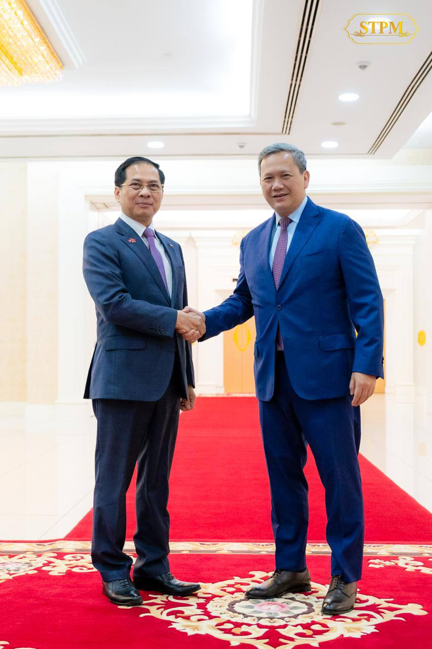东盟头条电 2025年11月28日下午,柬埔寨首相洪玛奈在金边会见了越南副总理裴青山一行,双方就共同关心的事务进行了工作讨论。