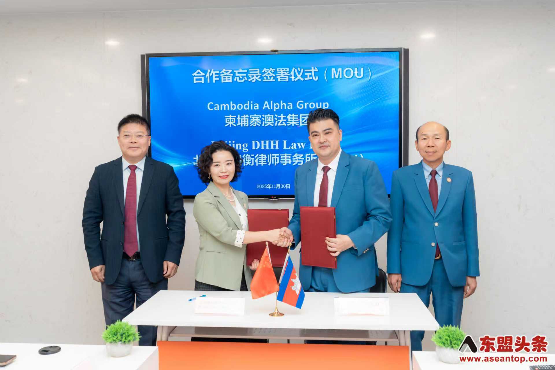 东盟头条电 2025年11月30日上午,柬埔寨工商联合总会与北京德和衡律师事务所于金边国宾大楼举行交流会议,并签署合作协议。