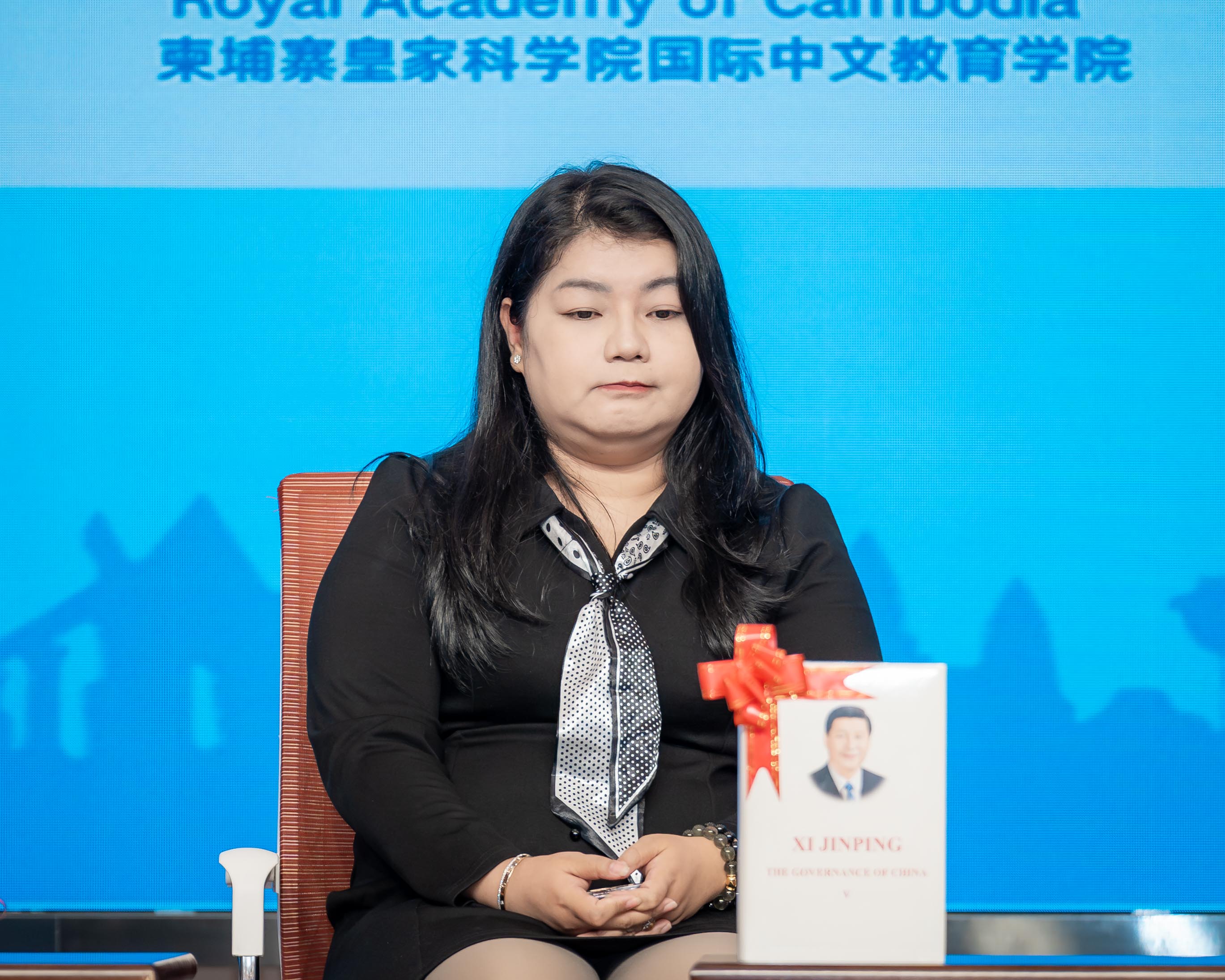 期间,主办方中国外文局亚太传播中心代表吴文钦分别向柬埔寨教育、青年和体育部国务秘书春・奇温以及柬埔寨中国港澳侨商总会、柬华理事总会、柬埔寨中国总商会、柬华应用科技大学等机构代表赠送《习近平谈治国理政》第五卷英文版。