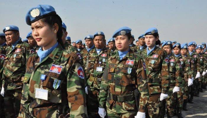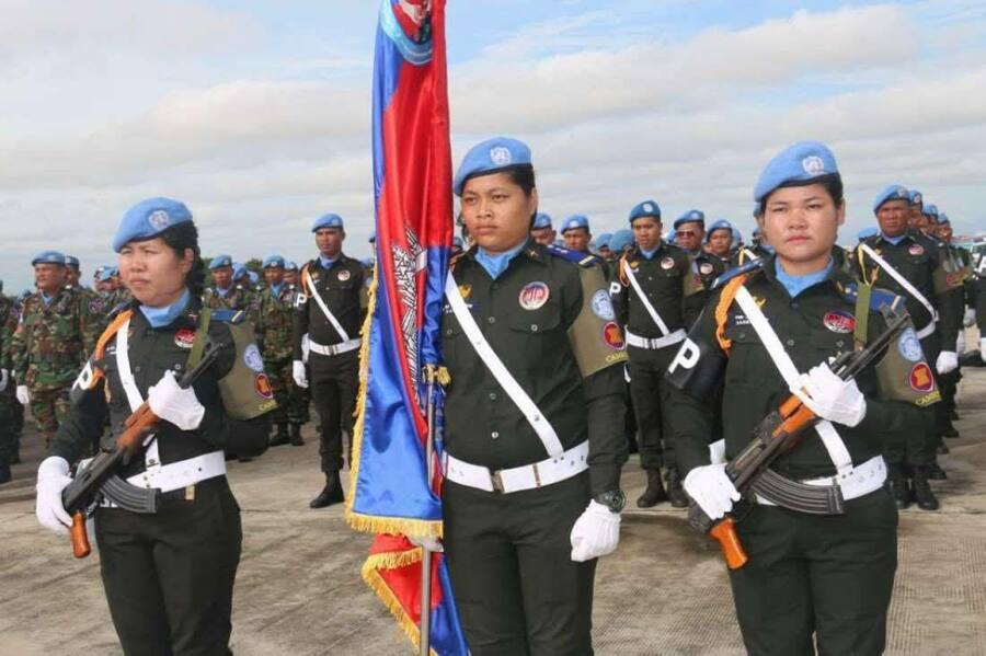 柬埔寨长期以来积极参与联合国维和行动。过去十年间,柬埔寨已向包括苏丹、南苏丹、黎巴嫩、中非、叙利亚、塞浦路斯和马里在内的多个国家和地区派遣了蓝盔部队。这支部队涵盖工程兵、二级医务人员、排雷人员、宪兵及未爆弹药处理人员等专业力量。近年来,柬埔寨在推动女性参与联合国维和任务方面取得显著进展,已成为支持女性蓝盔成员参与国际行动的领先国家之一。
