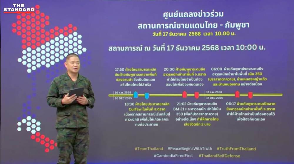 而柬埔寨国防部发言人马莉淑洁达12月17日在新闻发布会上表示,泰国军队持续对柬埔寨领土进行空袭和炮击。
