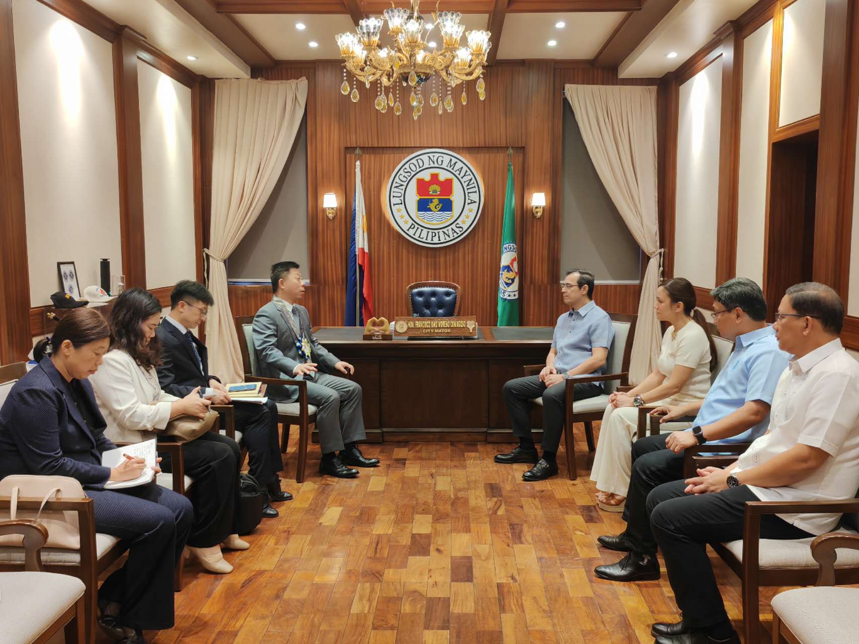东盟头条电 中国驻菲律宾大使馆消息,12月22日,中国驻菲律宾大使井泉赴马尼拉市政厅会见马尼拉市市长莫雷诺,并出席莫举行的欢迎仪式。