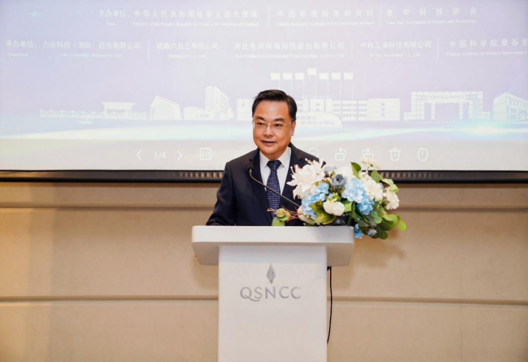 东盟头条电 中国驻泰国大使馆消息,12月22日,中国驻泰国大使张建卫出席由中国驻泰国大使馆、中国环境科学研究院及泰中科技协会联合主办的“庆祝中泰建交50周年暨中泰绿色发展研讨会”开幕式并致辞。