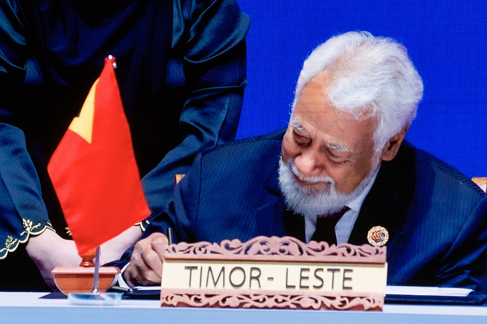 东帝汶总理夏纳纳签署《东帝汶加入东盟宣言》。图片来源:MyAsean2025官网