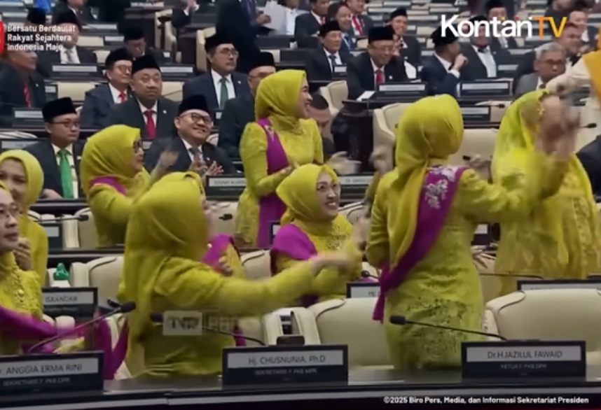 2025年8月,印尼国会议员在会议期间跳舞。 图片来源:KontanTV视频截图