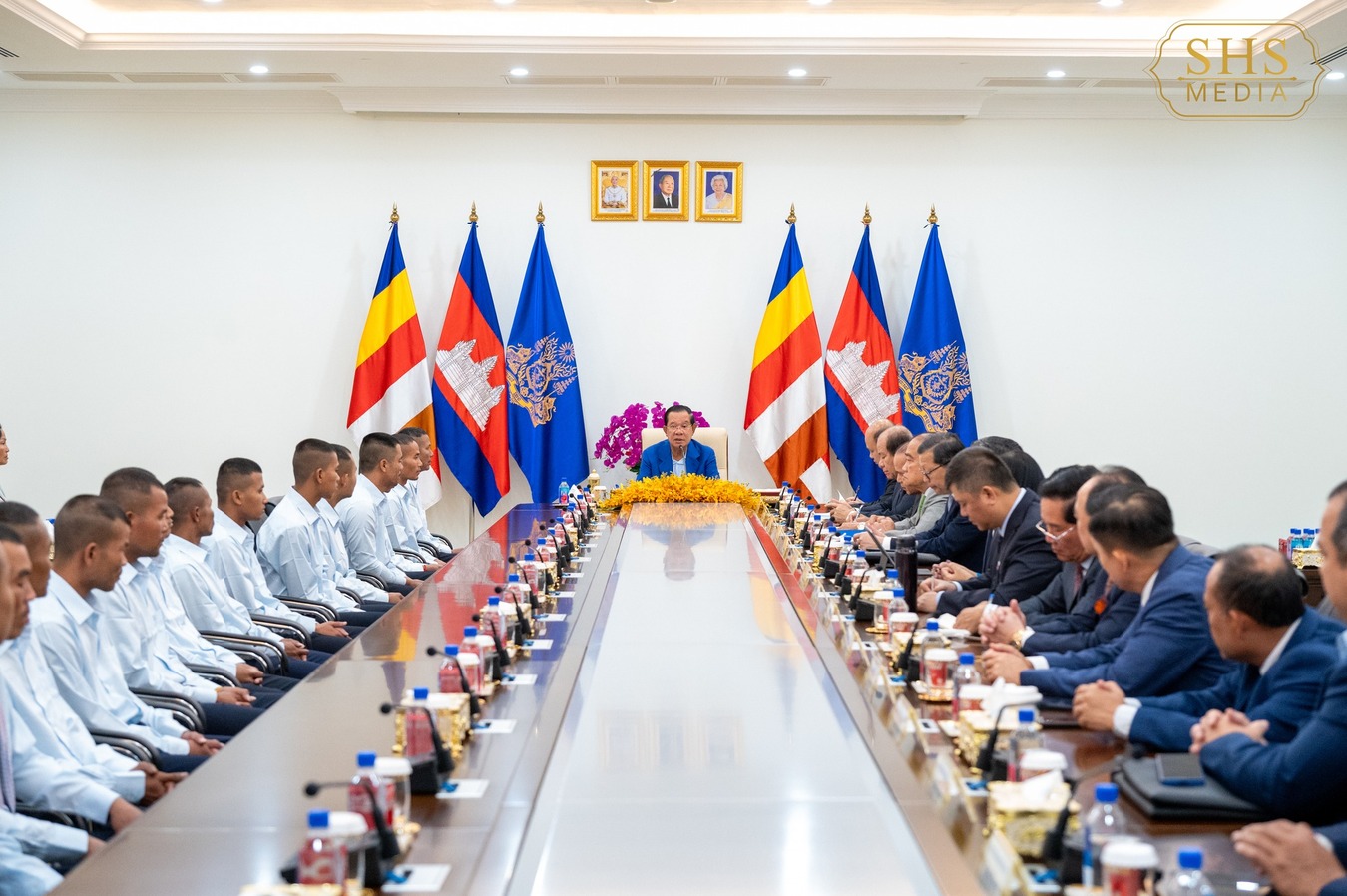 东盟头条电 2026年1月1日上午,柬埔寨人民党主席兼参议院议主席洪森在接见了前一日(2025年12月31日)返回柬埔寨的18名士兵及其家属。