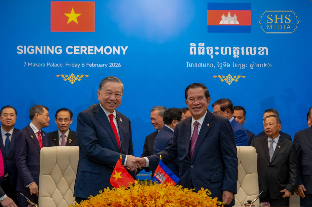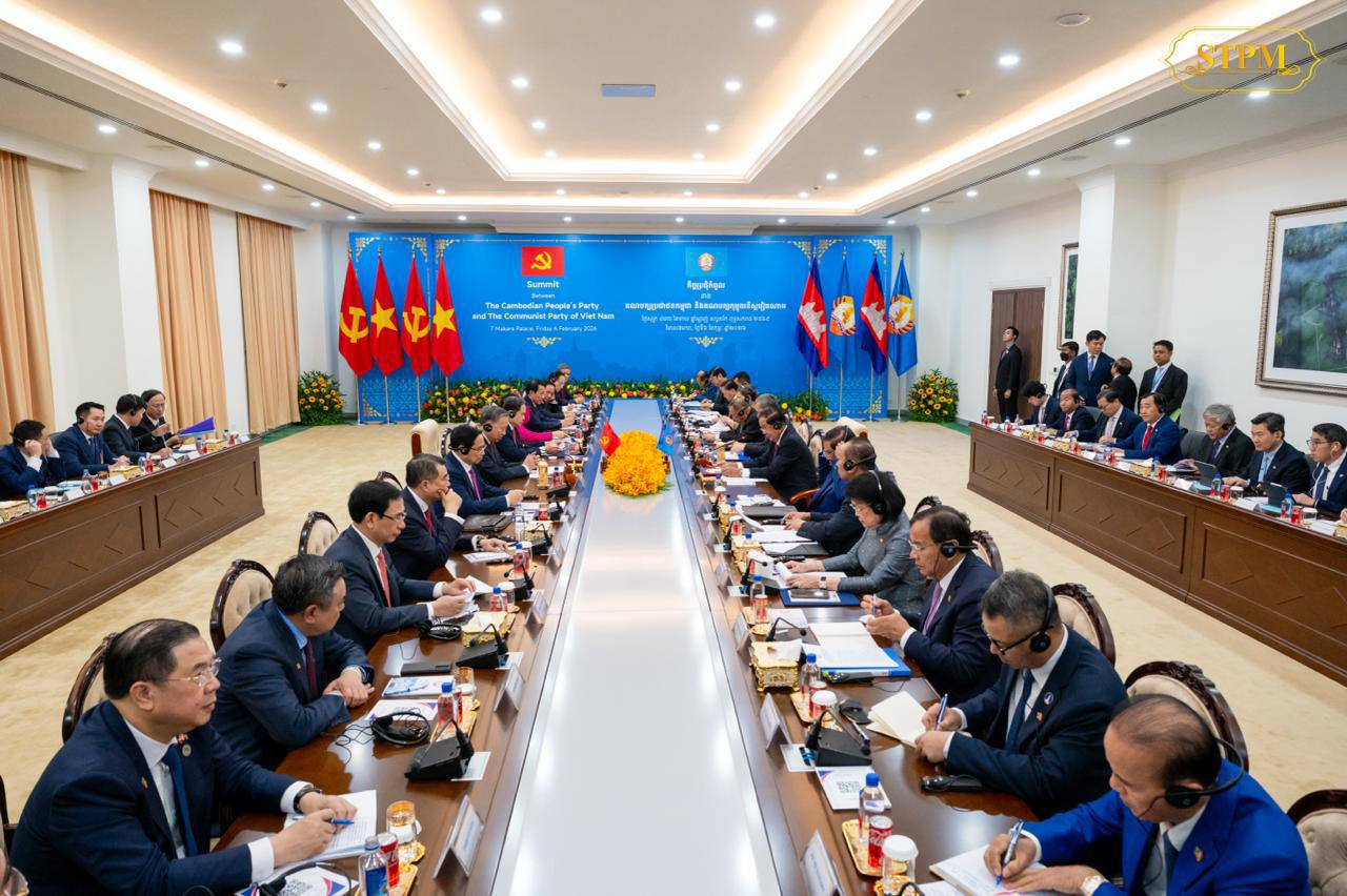 东盟头条金边2月6日电 2月6日,柬埔寨人民党主席、参议院主席洪森、柬埔寨首相洪玛奈率领柬埔寨高层领导人与越南共产党中央委员会总书记苏林率领的越南高级代表团在金边举行高层会晤。双方就柬越传统友好关系、党际交流合作机制以及当前地区和国际形势深入交换意见,并就进一步巩固和发展两党、两国全面战略合作伙伴关系达成广泛共识。