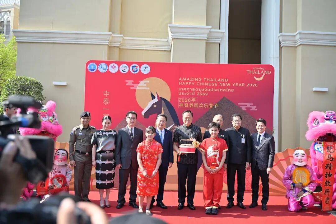 泰国总理府专设了马年“欢乐春节”主题背景板,泰国当地舞狮助兴,中泰媒体现场拍摄报道,院内喜气洋洋、年味浓郁。