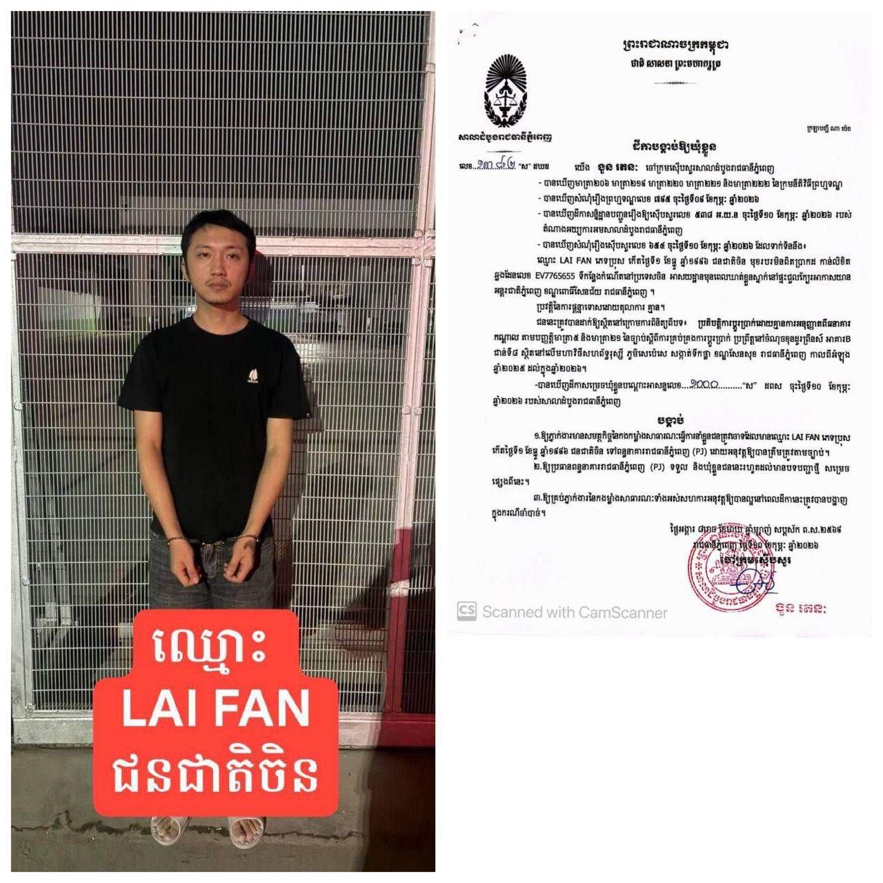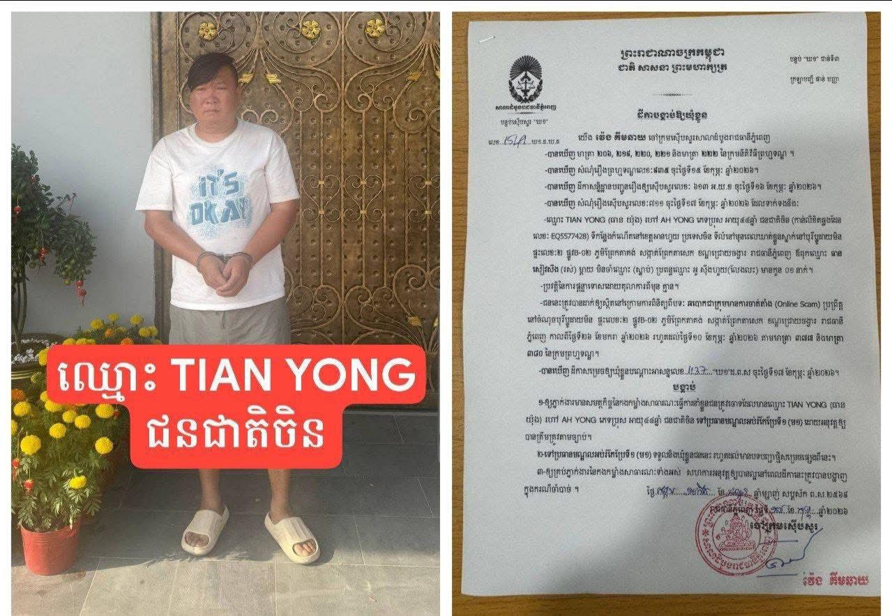 案件还涉及一名新加坡华人Thian某,其被控在金边铁桥头区的一处住宅小区从事有组织电诈犯罪。