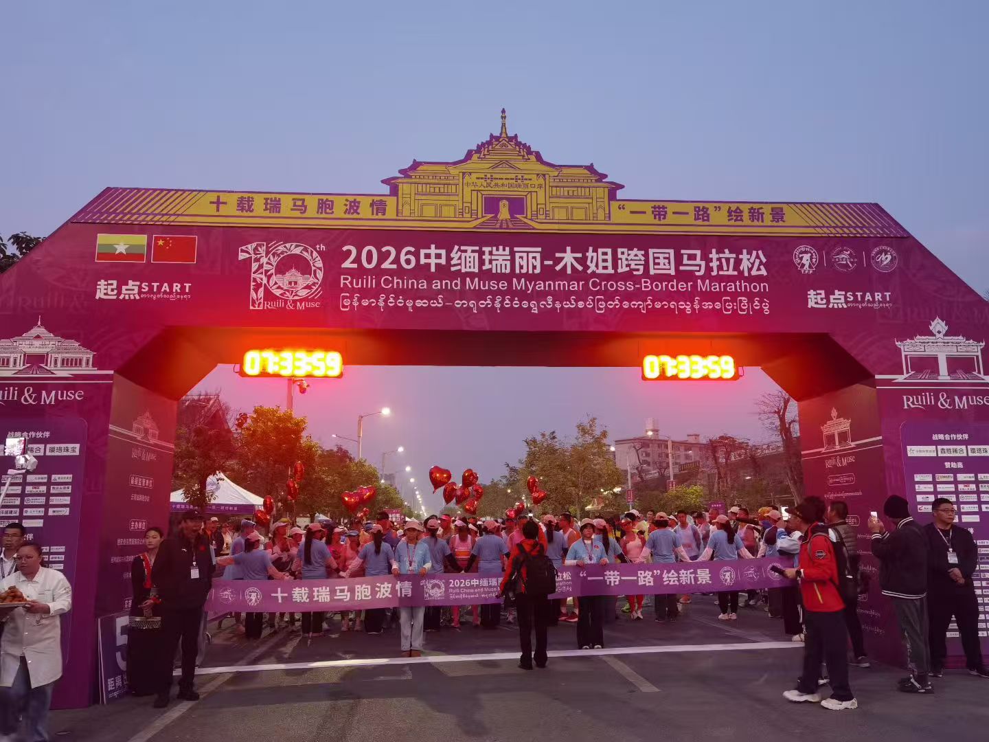 东盟头条电 2026中缅瑞丽—木姐跨国马拉松3月1日在中国云南省德宏傣族景颇族自治州瑞丽市鸣枪开跑。赛事由中国云南德宏由云南省体育局、缅甸联邦共和国体育与青年事务部体育运动司指导、德宏傣族景颇族自治州人民政府与缅甸木姐地区政府联合主办。赛事以“十载瑞马胞波情 ‘一带一路’绘新景”为主题,设马拉松(42.195公里)、半程马拉松(21.0975公里)两个项目,共吸引了3998人报名。