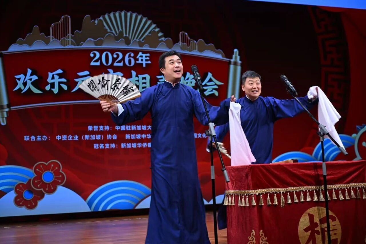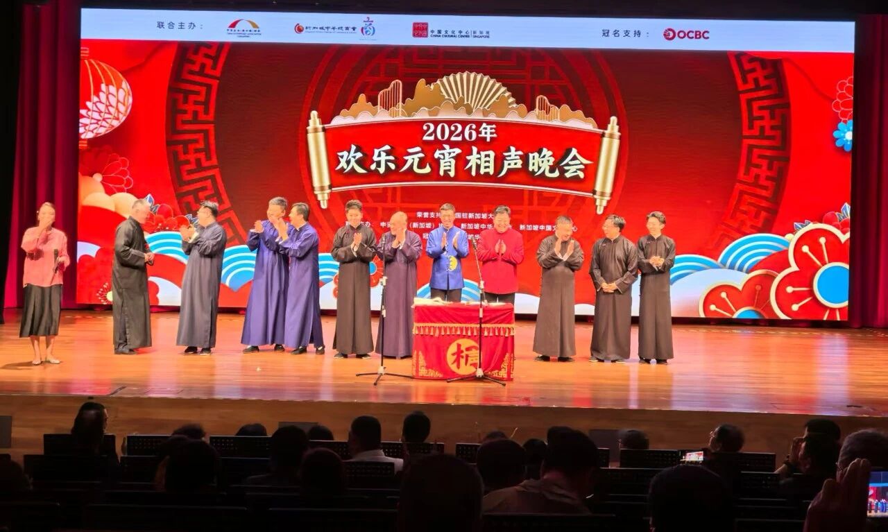 东盟头条电 中国驻新加坡大使馆消息,3月1日,由中资企业(新加坡)协会、新加坡中华总商会、新加坡中国文化中心联合举办的2026年欢乐元宵相声晚会在新加坡中国文化中心举行,中国驻新加坡大使曹忠明出席,使馆参赞康伊明陪同。