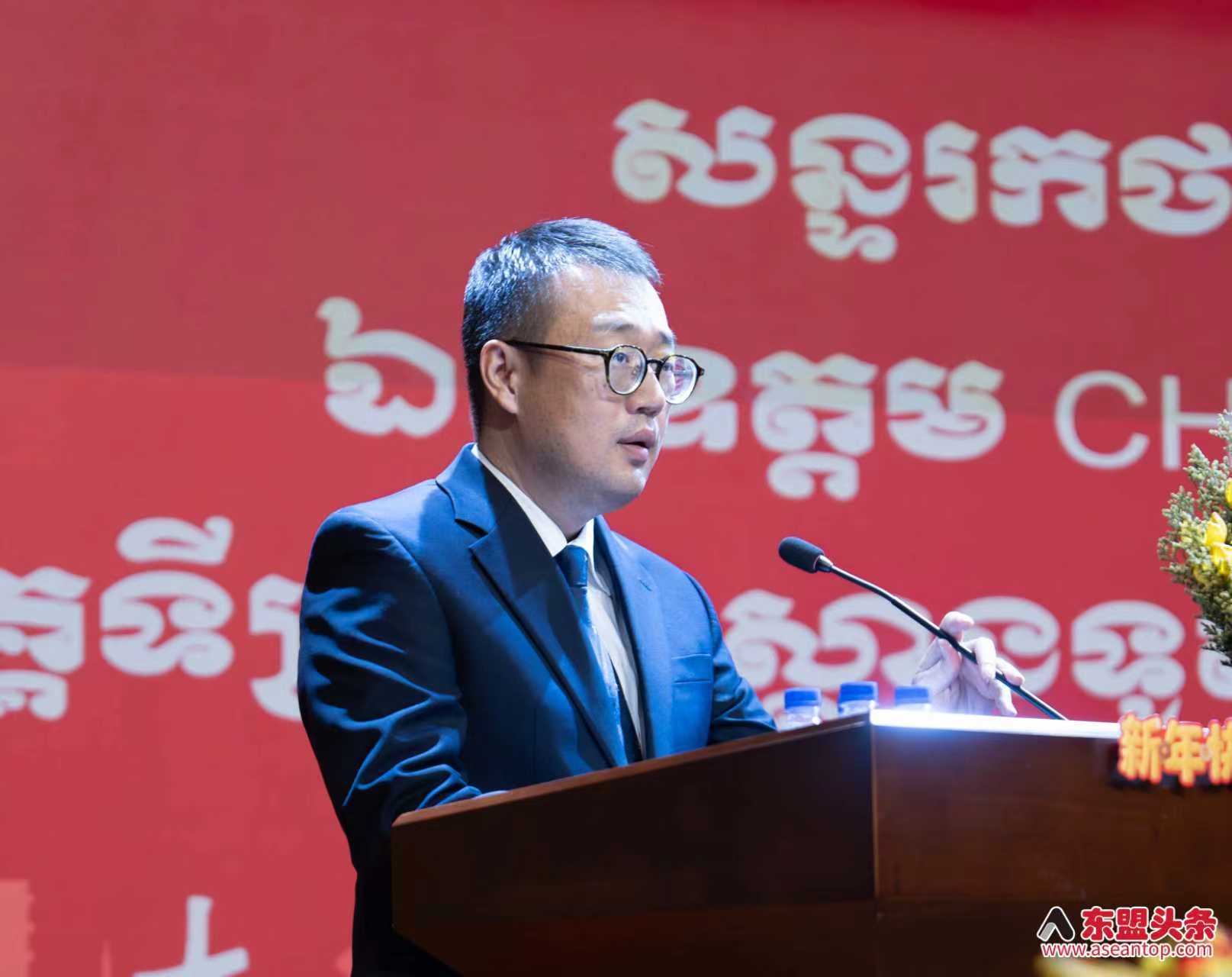 中国驻柬埔寨大使馆公参陈聪在致辞中向现场来宾致以元宵佳节的美好祝福, 并感谢柬华理事总会与柬华应用科技大学的精心筹备。陈聪表示,今天的元宵喜乐会作为“欢乐春节”系列活动的收官之作,是中柬文化、教育及人文交流持续深化的生动体现。今年的活动以“马”为主题,寓意“龙马精神”“马到成功”,不仅寄托了对新一年的美好祝愿,也象征着中柬关系蓬勃发展、蒸蒸日上的良好势头。他指出,2025年中国国家主席习近平成功访柬,两国携手构建新时代全天候中柬命运共同体,相信在马年双方共同努力下,中柬友谊如骏马奔腾,驰骋不息。最后,陈聪再次感谢柬华应用科技大学长期以来为弘扬中华文化、培养技术人才、促进中柬人文交流作出的积极贡献,并祝愿各位来宾在新的一年里马到成功、龙马精神。