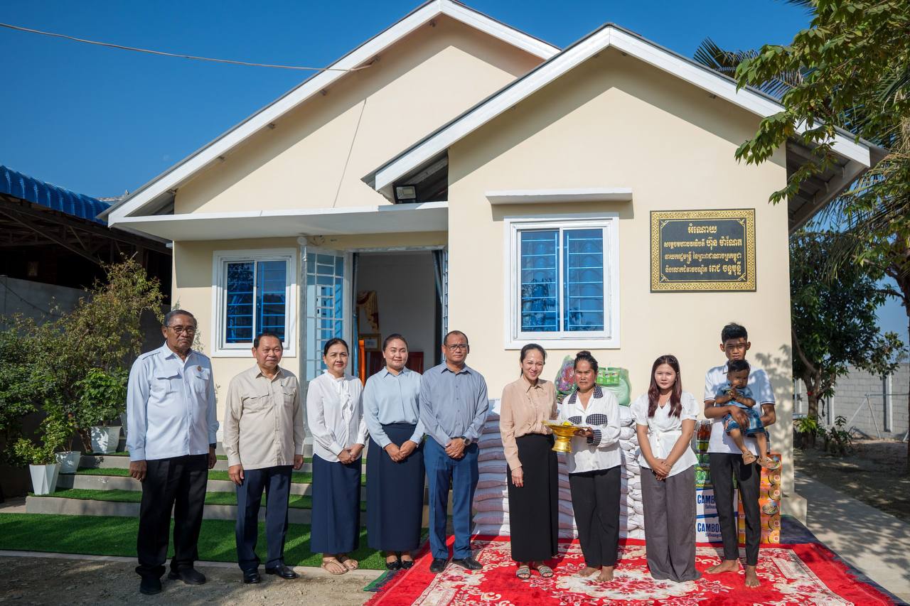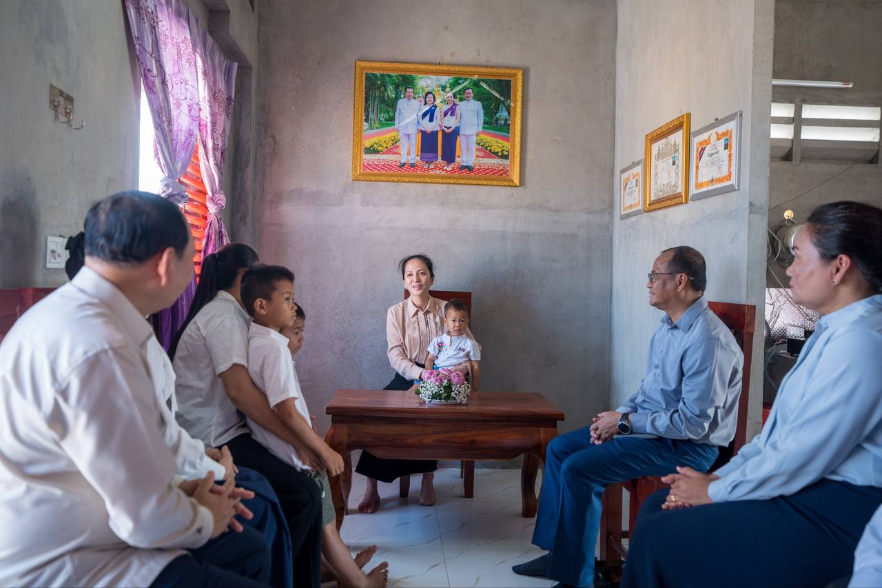 东盟头条金边3月9日电 据柬埔寨首相洪玛奈社交媒体3月9日消息, 柬埔寨首相洪玛奈夫人碧占莫妮赴磅清扬省, 为已故勇敢士兵的家属赠送新居及物资资源,表达国家对保家卫国勇士的尊重与关怀。