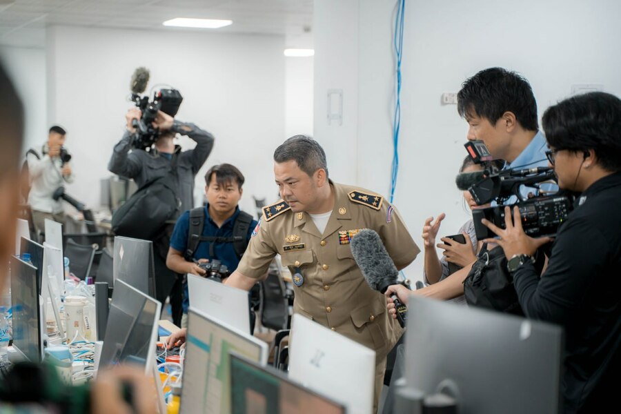 东盟头条金边3月12日电 据柬埔寨新闻部3月11日消息,3月10日柬埔寨警方组织专案行动,成功查封一处网络诈骗窝点,并邀请多家国际媒体记者前往现场采访报道。