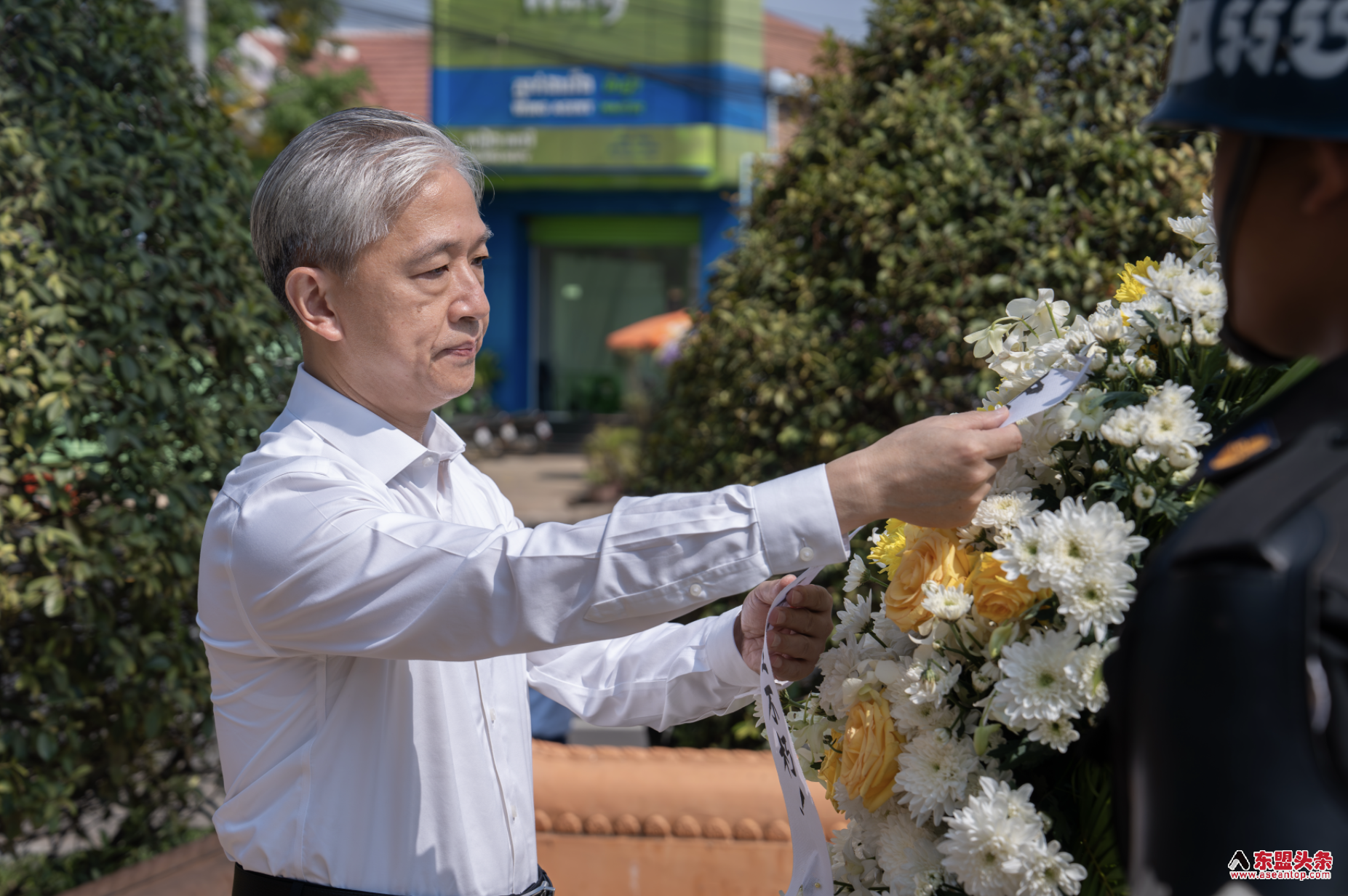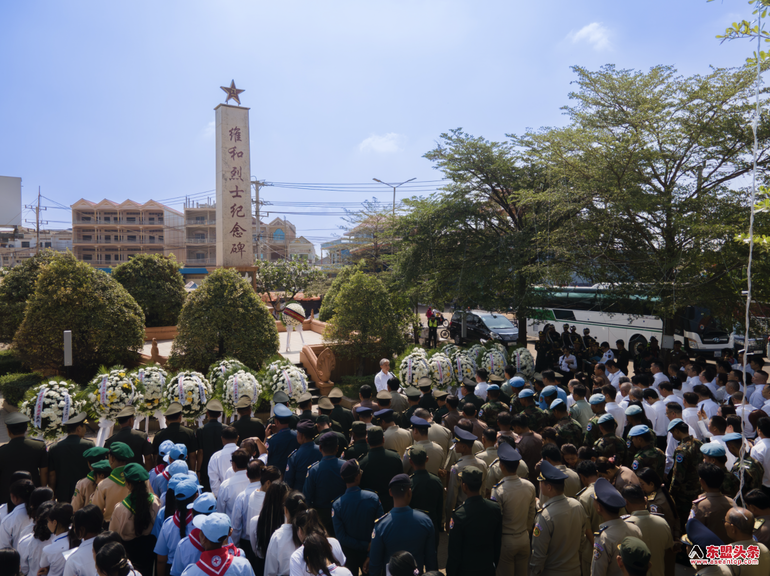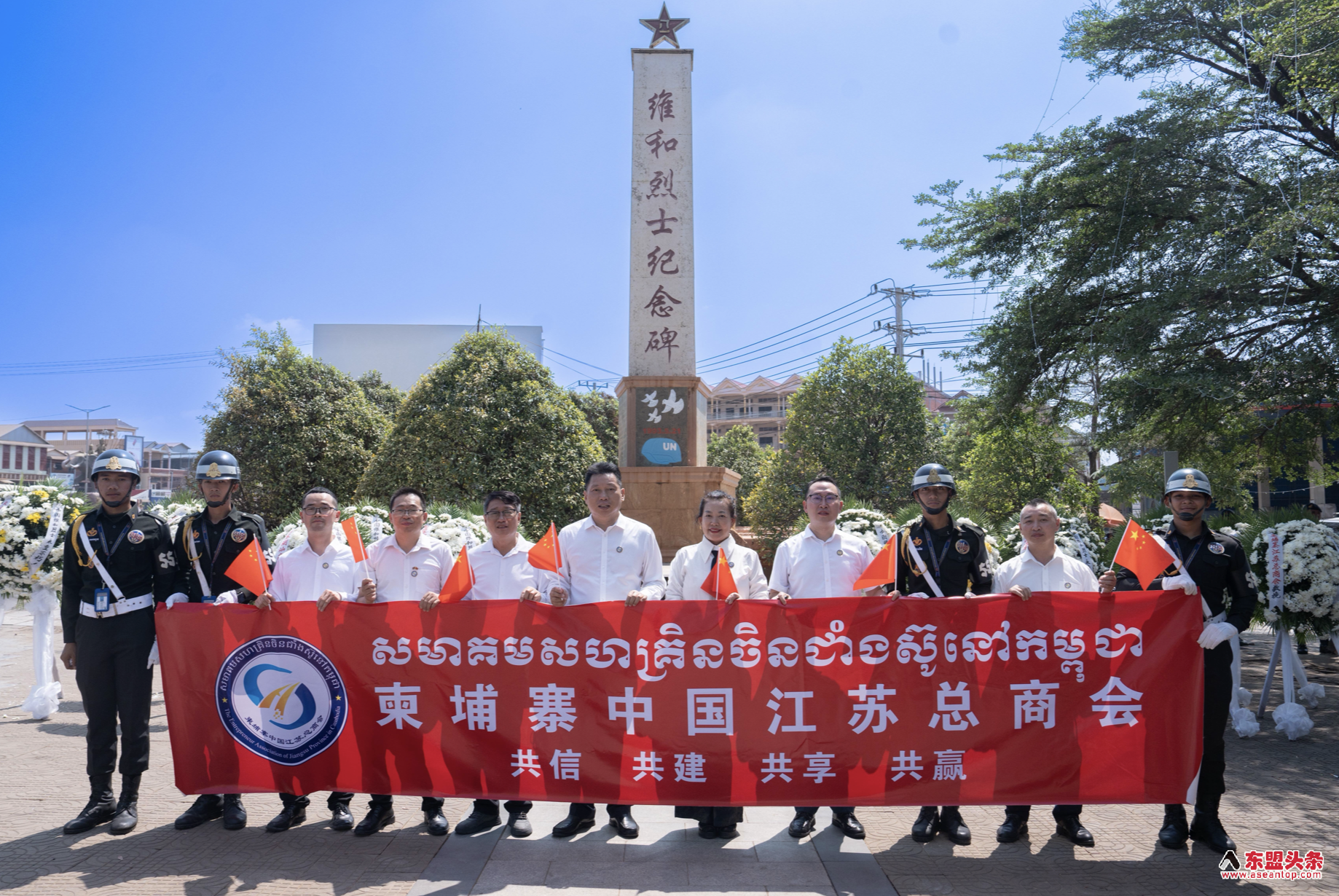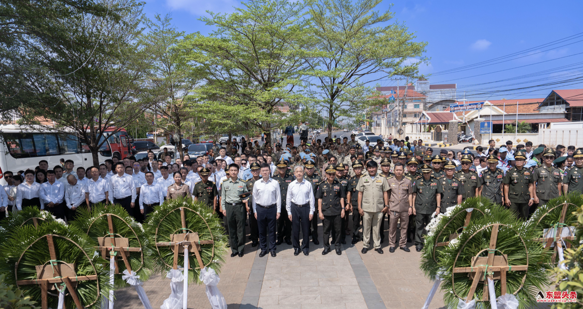 现场庄严肃穆,哀思绵长,各界代表敬献花圈、默哀致敬,追忆先烈为和平事业作出的卓越贡献,感怀中柬两国在风雨岁月中结下的深厚情谊。