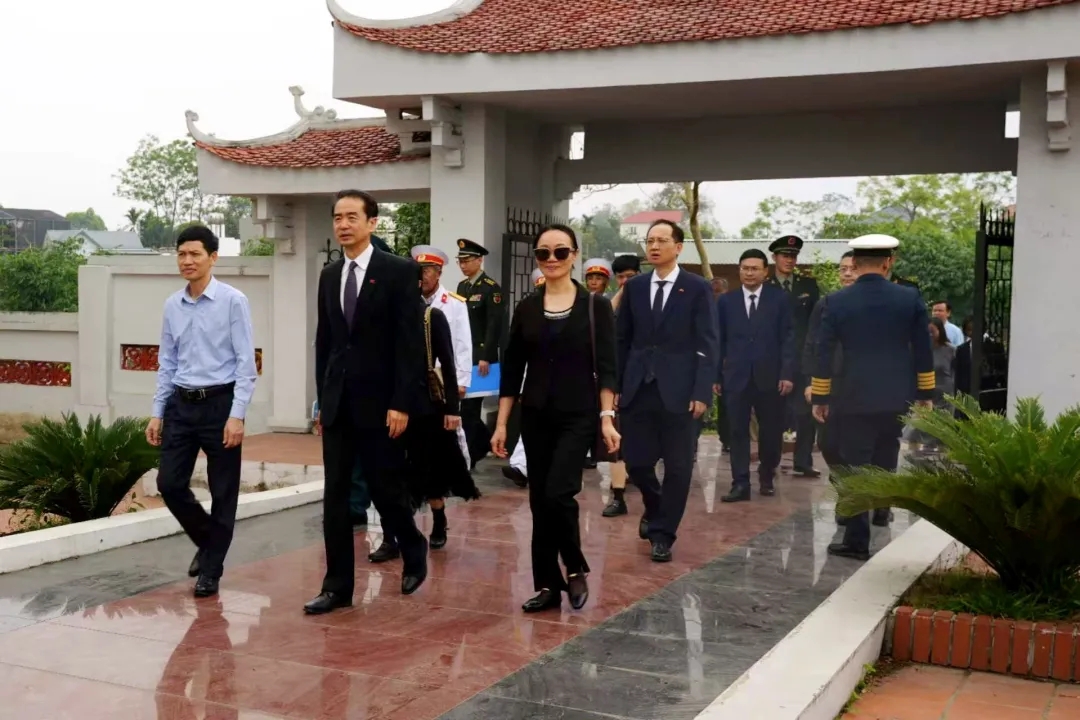 东盟头条电 中国驻越南大使馆消息,清明节前夕,中国驻越南大使何炜率使馆馆员、在越中资企业、新闻机构代表赴越南北宁省陶美中国烈士陵园祭扫,北宁省党政机关和友协负责人、曾参加抗美救国斗争的越军退伍老兵代表参加。