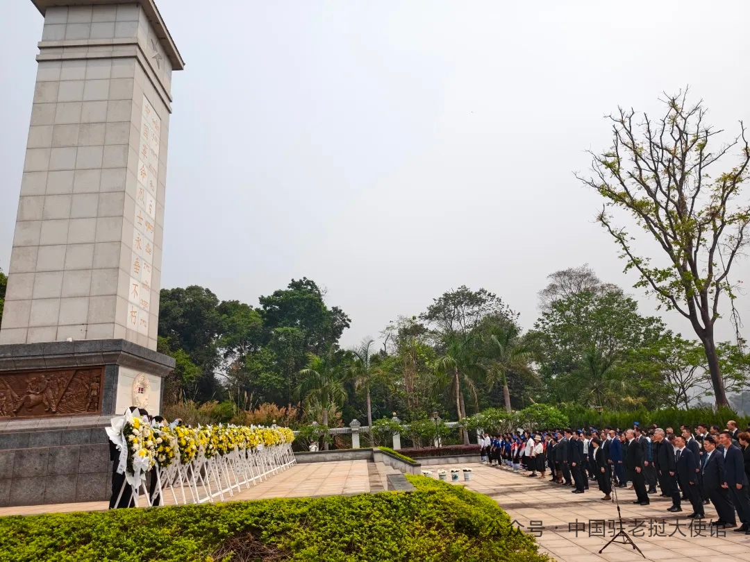 东盟头条电 中国驻老挝大使馆消息,4月5日清明之际,中国驻老挝大使方虹率驻老挝使领馆及中资机构、华人华侨代表,与乌多姆赛省委书记本空等老方各界共同祭扫勐赛、纳莫两处中国烈士陵园。