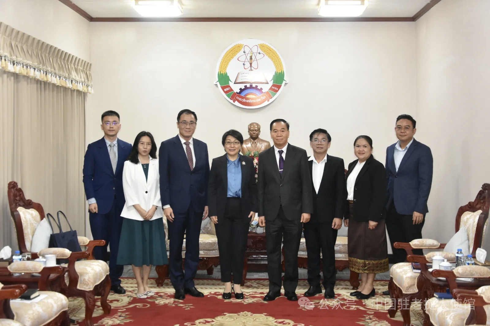东盟头条电 中国驻老挝大使馆消息,4月7日,中国驻老挝大使方虹拜会老挝党中央政治局委员、副总理兼教育与体育部长通沙立,向其履新表示祝贺。