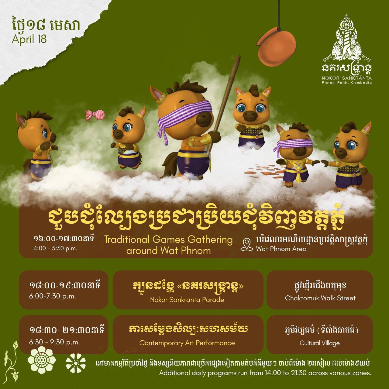 据介绍,金边塔仔山、四臂湾步行街及文化村三大活动区域将持续推出传统民俗游戏、文艺演出及夜间庆典等内容,吸引民众广泛参与。