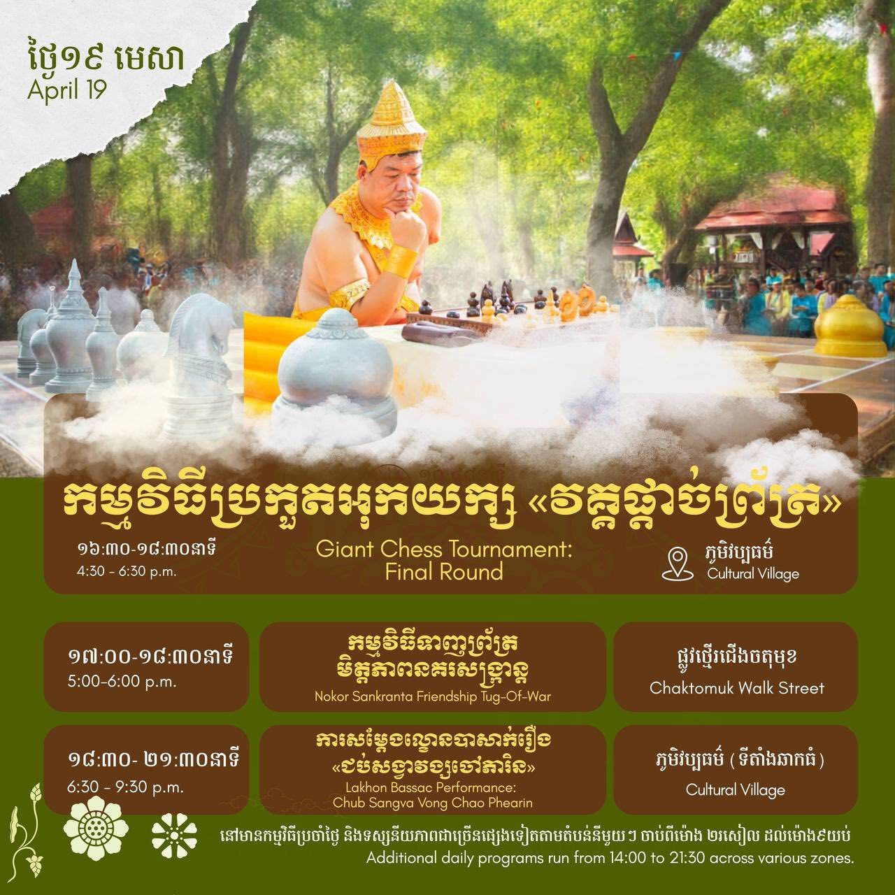 位于塔仔山与步行街之间的文化村区域则以传统文化展示为主,从中午2点开始将持续进行各种柬埔寨文化表演。其中4月18日18时30将上演“柬埔寨非遗表演”将柬埔寨各种不同种类非遗同台演出,19日安排巴萨剧《十王子》民间故事专场演出,集中展现高棉传统艺术魅力。