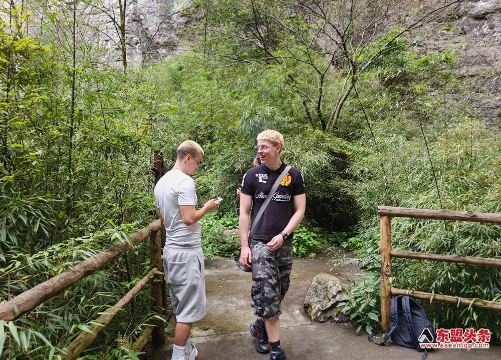 4月16日,东盟头条记者随采访团在天生三桥看到,景区内游人如织,很多打卡点需要排队拍照打卡。除了来自中国内地各地的游客外,人群中也有不少来自泰国、越南等东盟国家以及中国台湾的游客,还有来自法国、俄罗斯等国的西方游客。