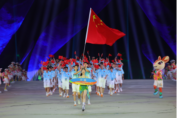 第六届亚洲沙滩运动会22日在海南省三亚市开幕。图为中国体育代表团入场。(第六届亚洲沙滩运动会组委会 供图)
