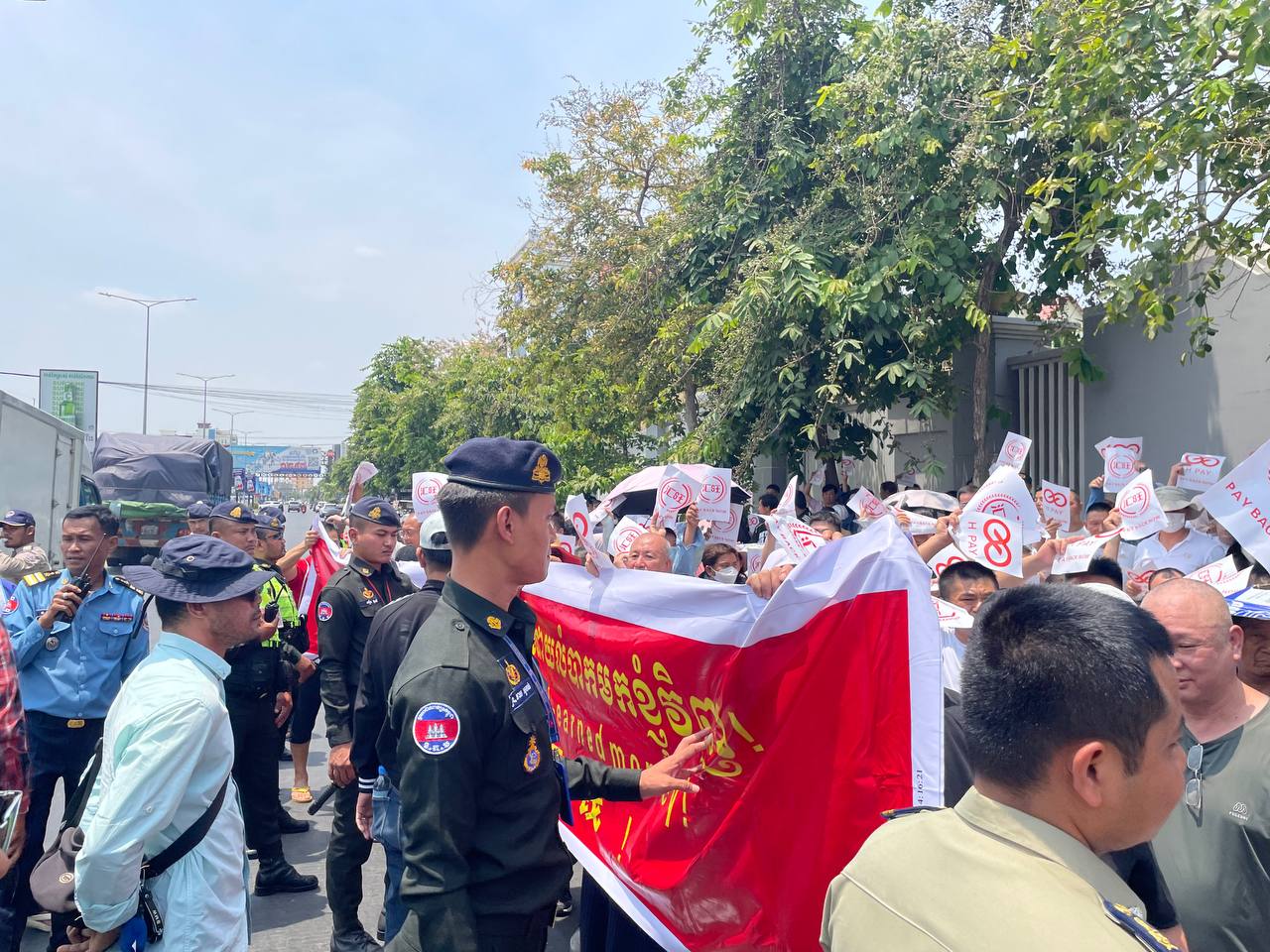 据报道,约百名以中国籍为主的示威者一度聚集并阻塞道路,同时由代表进入柬埔寨国家银行协商,但结果与前两次相同,用户仍无法取回因执照被吊销而被冻结的资金。