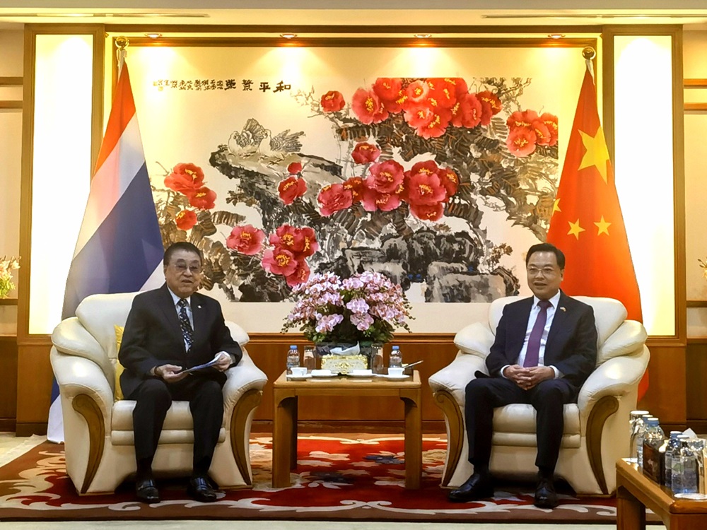 中国驻泰国大使张建卫在使馆会见泰国华文民校协会主席黄迨光